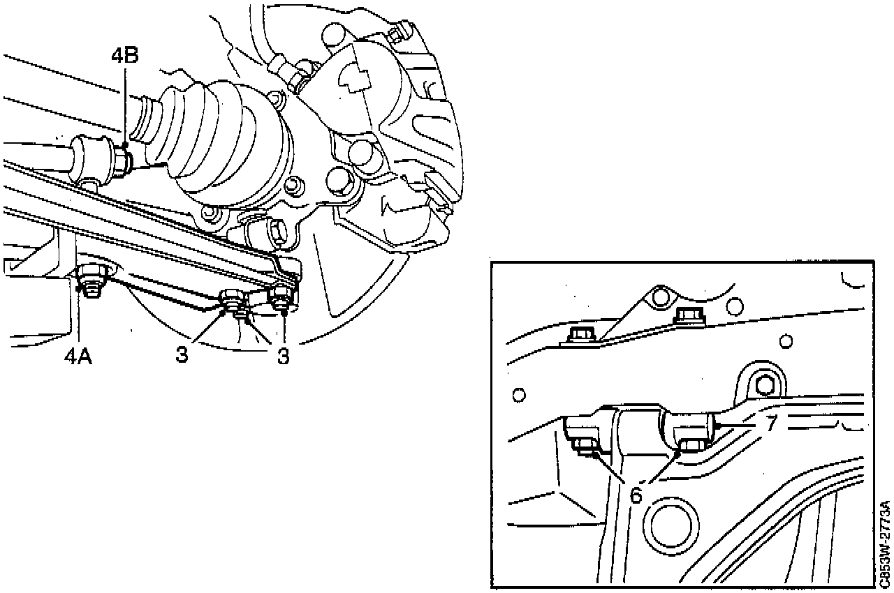 9. Insert the anti-roll bar through the link in the suspension arm. Fit washer and rubber bush and tighten the nut (4A).