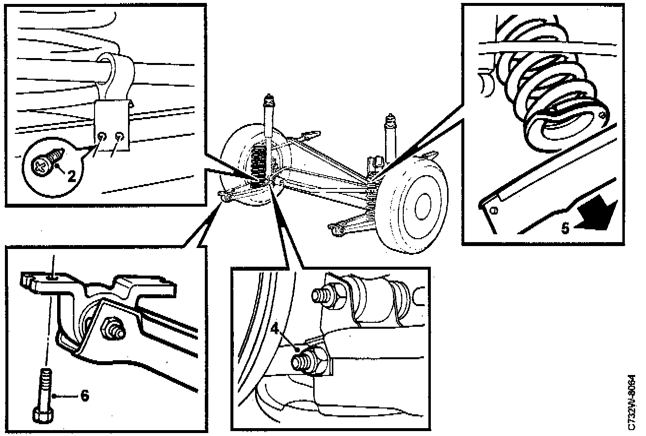 4. Position a jack under the link arm. Remove the bolt on the link arm bracket.