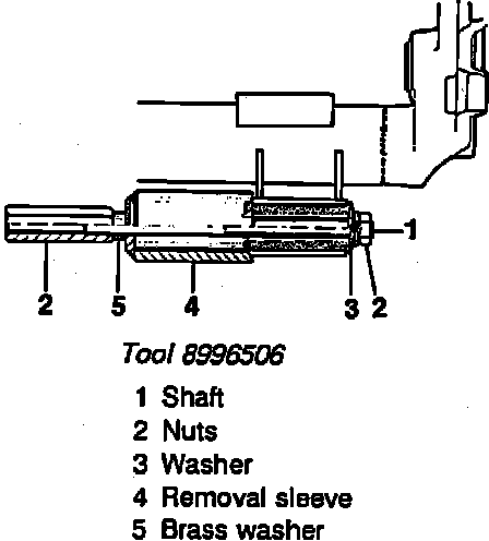 3. Position bushing remover No. 8996506 or equivalent, as shown in Fig. 3.