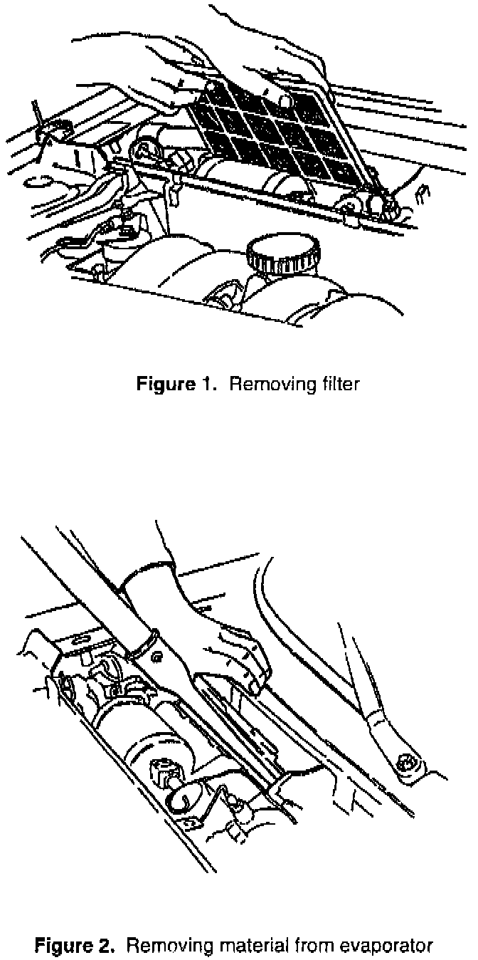 13. Reinstall the filter cover. Start the engine. Switch to recirculation. Fan and heat should be on high (maximum). Run engine for 10 seconds to make sure the entire evaporator assembly is covered with the product. Shut off the engine.