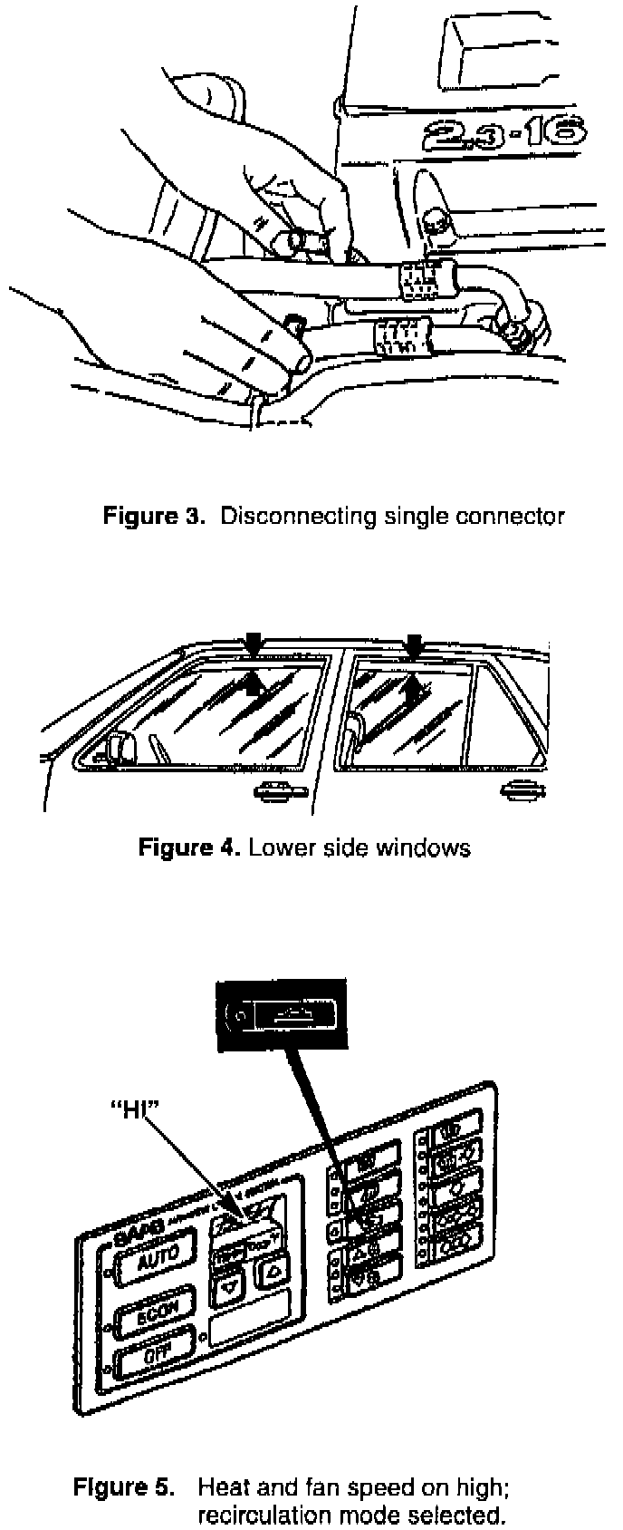 8. With the car operating at normal temperature, switch the heat and tan speed to high (maximum) and choose recirculation mode. See Figure 5.