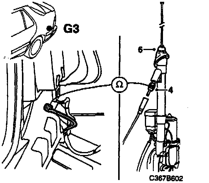 4. Take a resistance reading across the shield connection on the antenna connector and grounding point G3 below the left-hand rear light cluster.