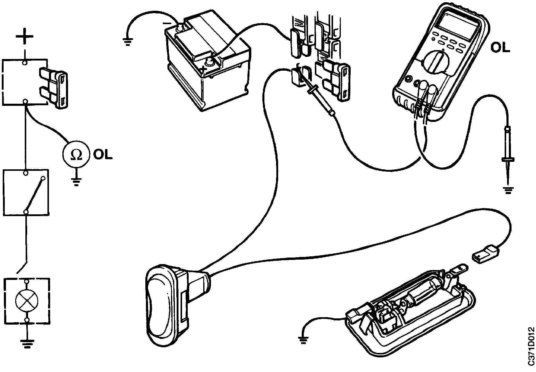 If the ohmmeter shows infinite resistance "OL" (infinity), there is no short circuit.