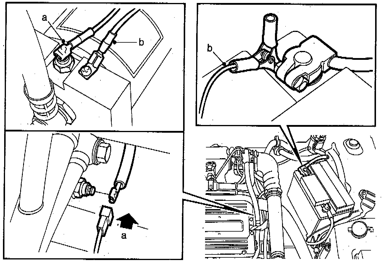 b. Connect the adapter plate ground lead to the negative terminal on the battery.