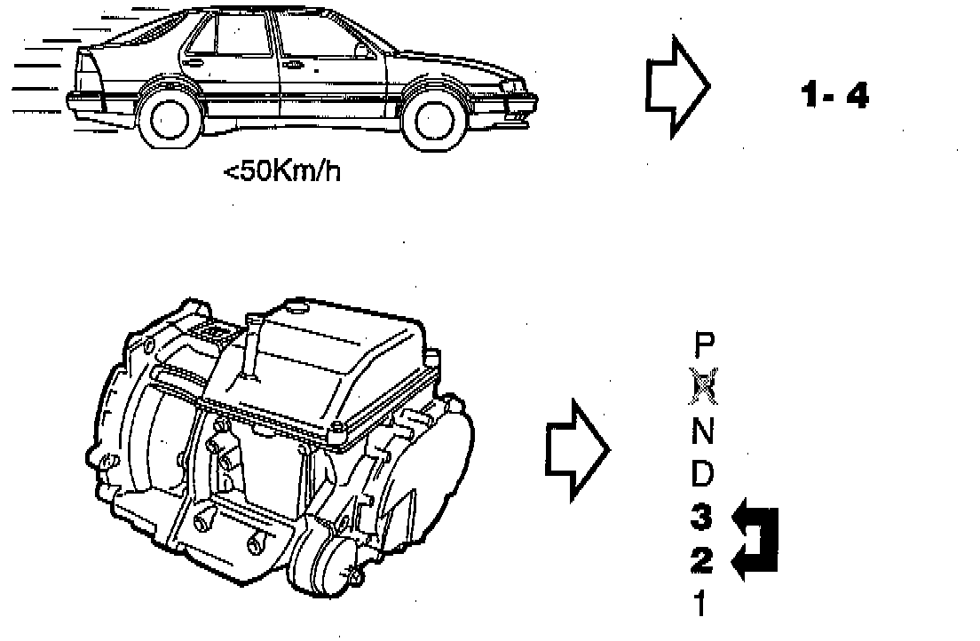 - Upshift too early 1-4, takes place below 50 km/hr: