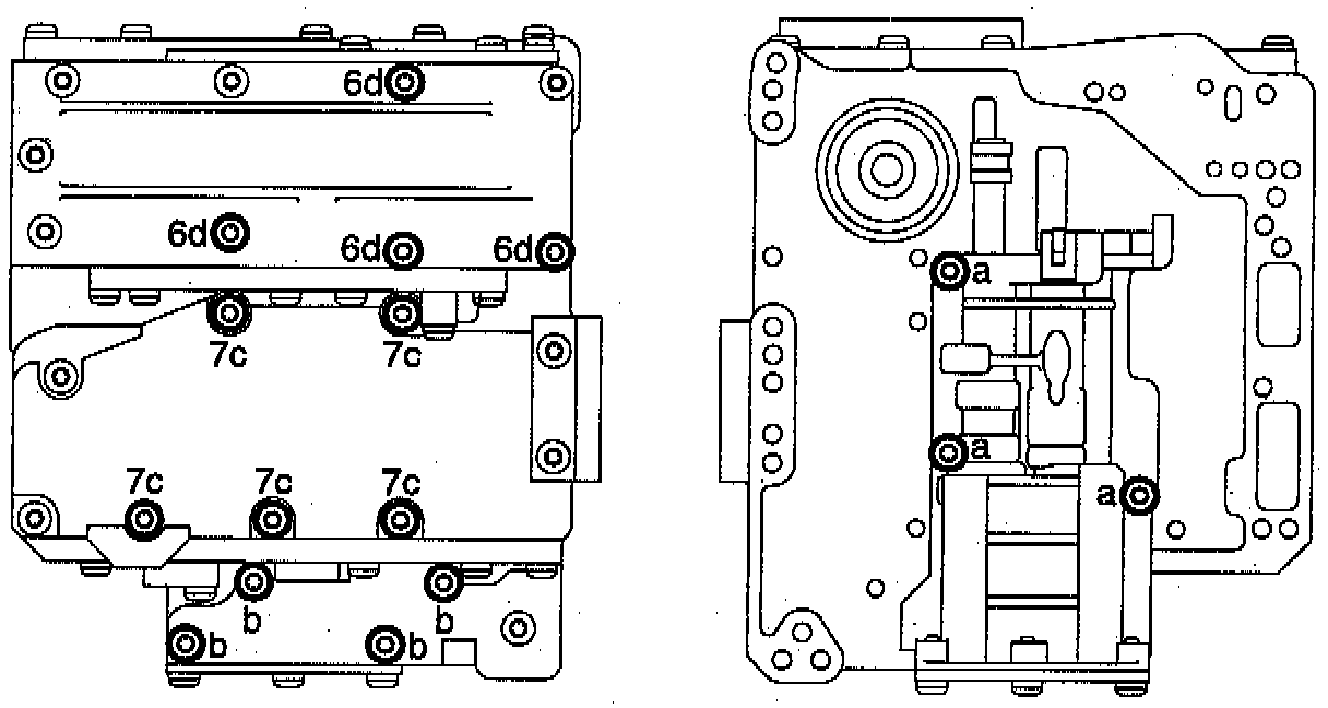 8. Check that the parts of the valve body are directly above each other and then torque tighten all screws.