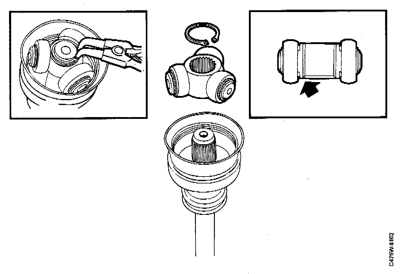 2. Remove the existing grease. Remove the circlip and pull the universal joint free from the shaft using the appropriate three clawed puller.