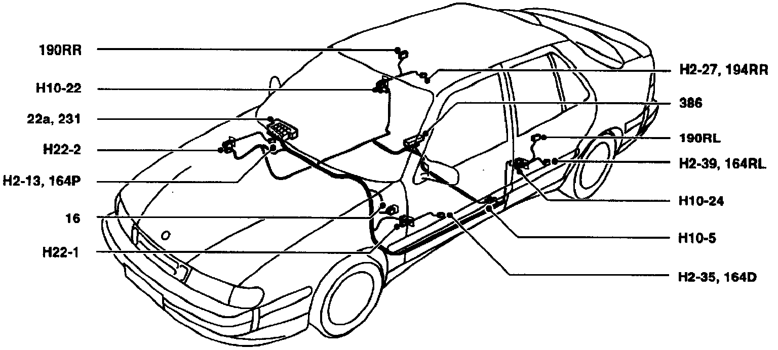 G14 Grounding point, left-hand front seat member.