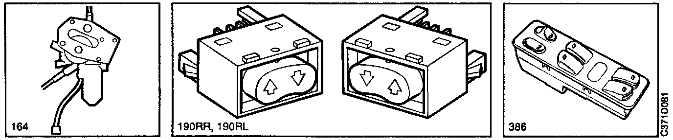 386 Switch, electric window lifts, on the centre console between the front seats.