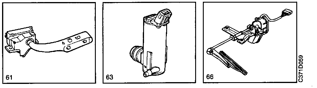 63 Washer motor, on the washer fluid reservoir in the right-hand wheel housing.