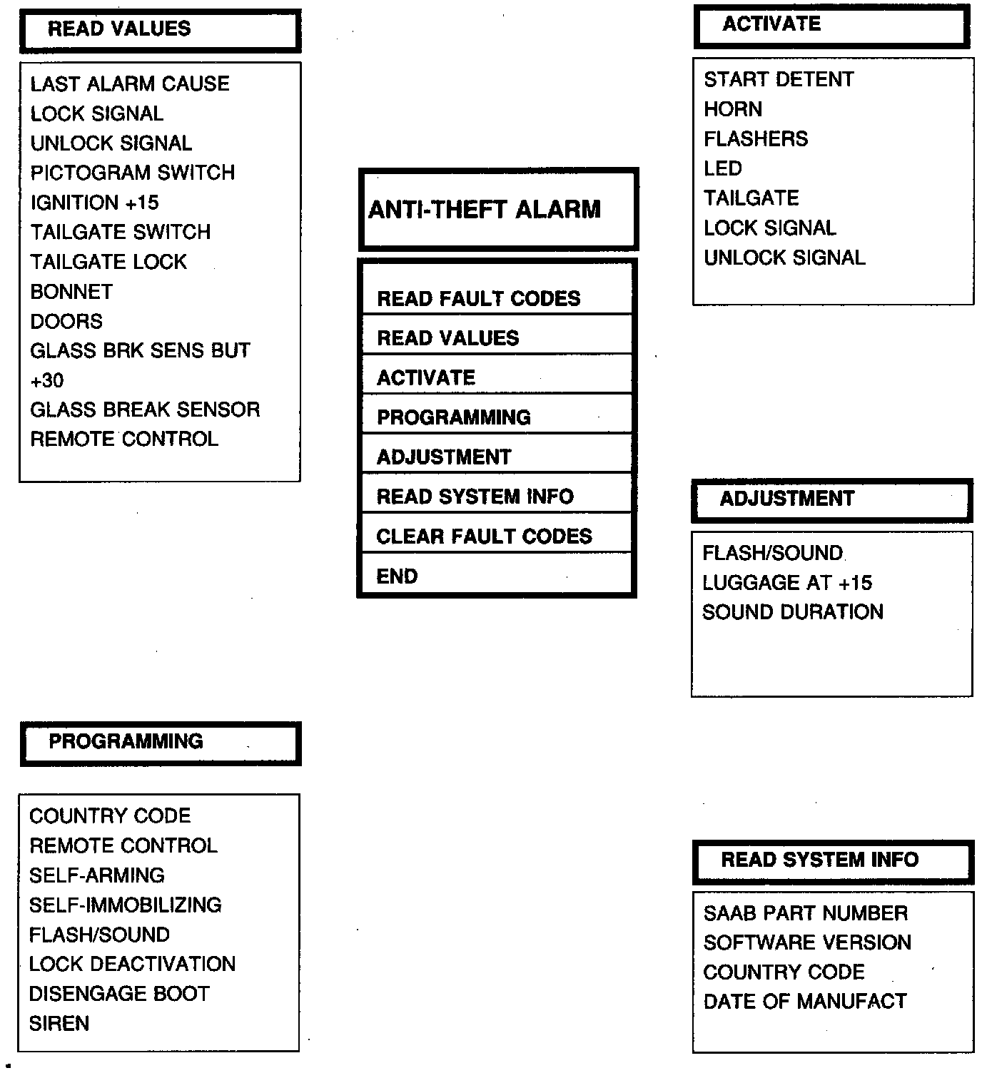ISAT Menu Structure, Anti-Theft Alarm