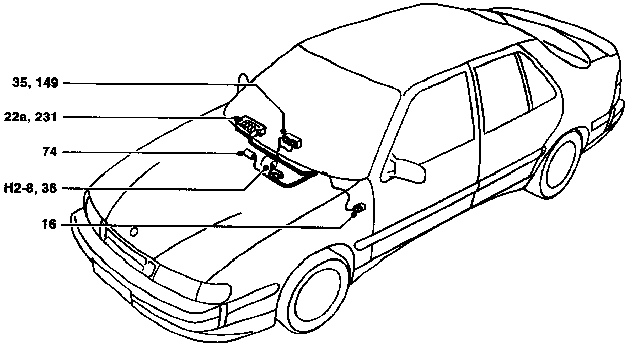 36 Motor, ventilation fan, in the fan housing between the evaporator casing and heater housing.