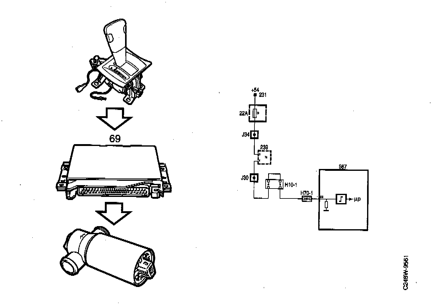 When the selector lever on a car with automatic transmission is moved to a position other than P or N, positive battery voltage (B+) is applied to pin 69 of the Motronic control module. The control module then opens the idle air control valve slightly to compensate for the increased engine load.