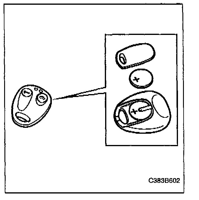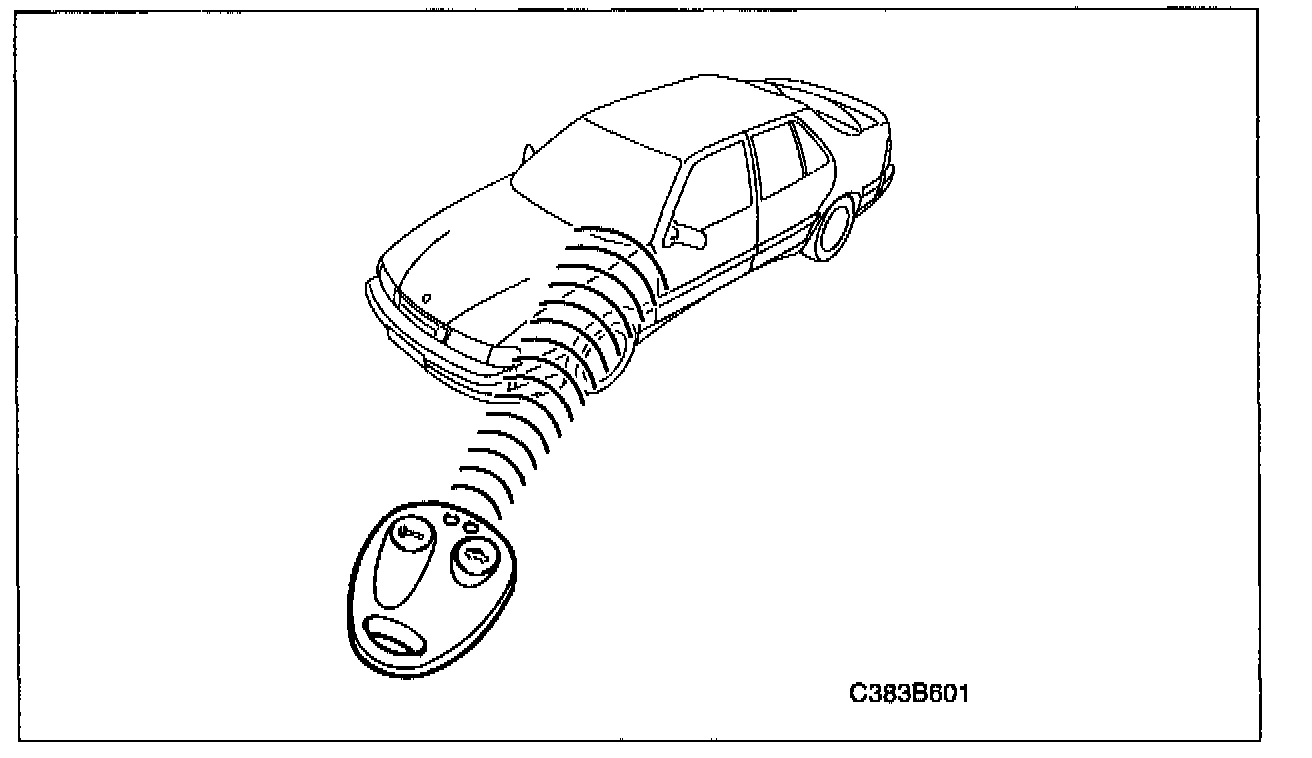 7. Carry out a function check by terminating the diagnostic communication and turning the ignition switch to the OFF position. Then, press the left button on the remote control 5 times in succession to synchronize it with the theft alarm control module.