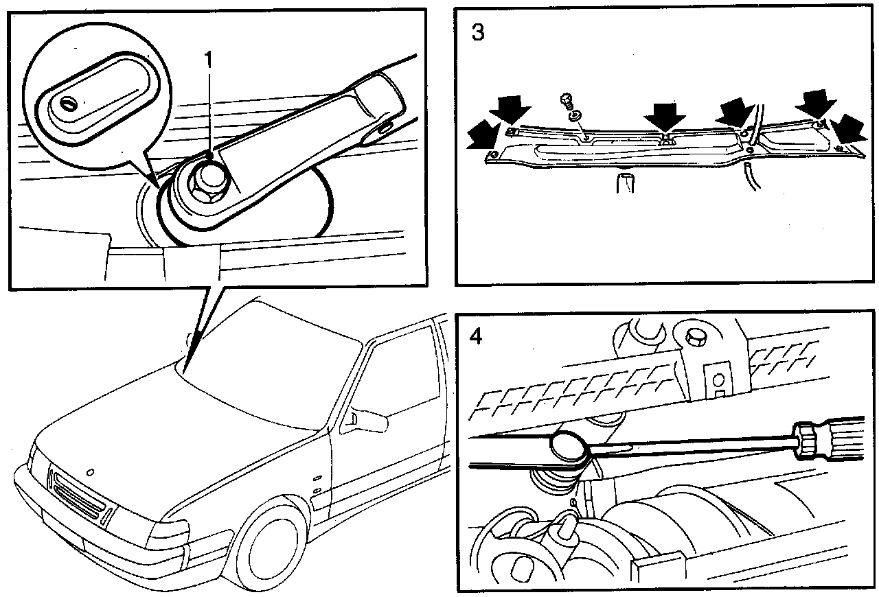 1 Remove the wiper arms and protective rubber covers.
