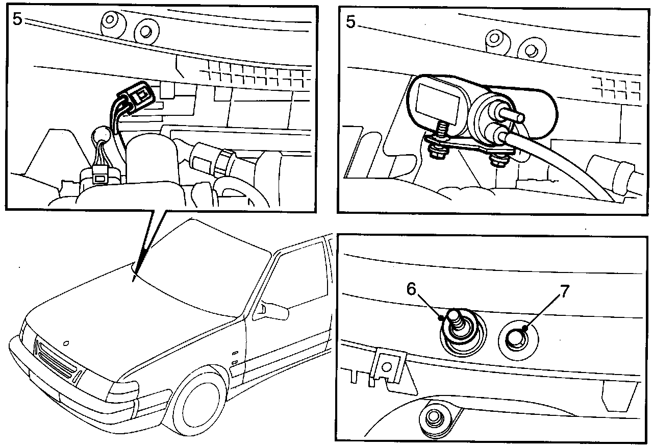 8 Reconnect the washer hose, install the cover panel and bonnet seal.