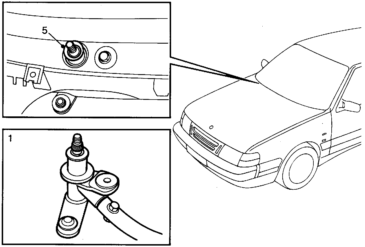 1*) Remove the circlip from the right-hand wiper spindle and press the spindle down slightly.