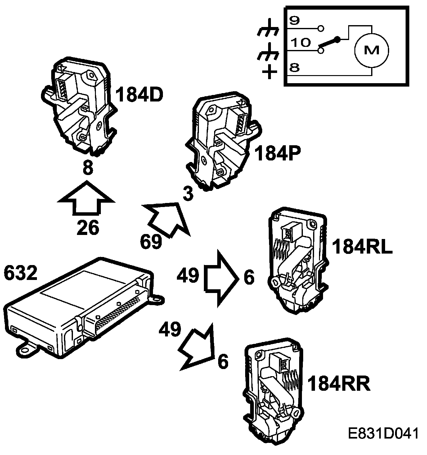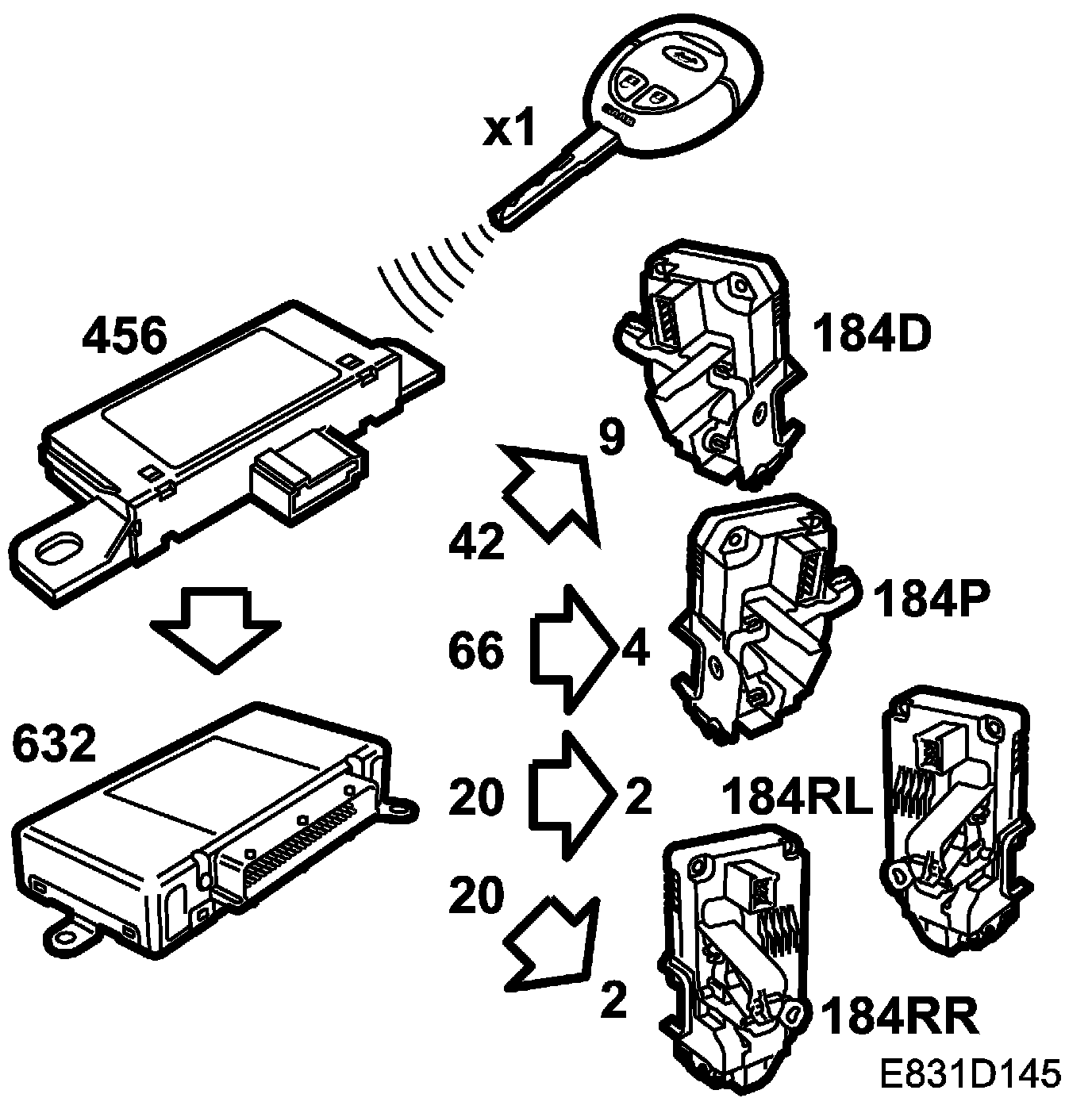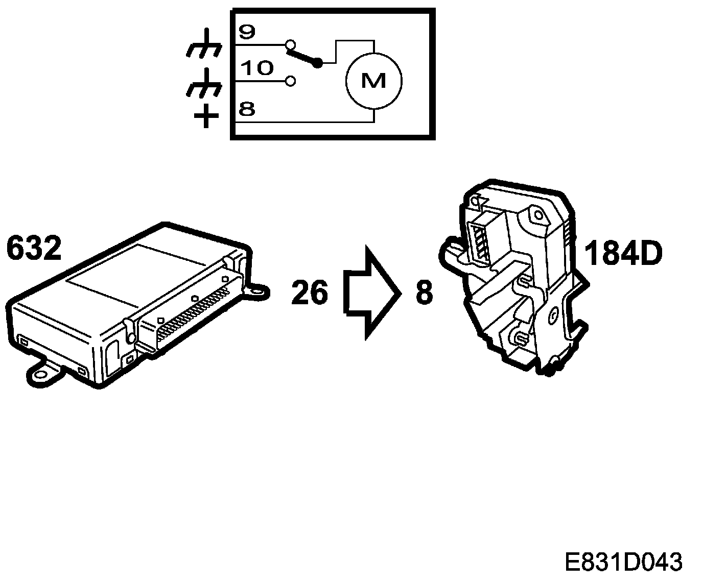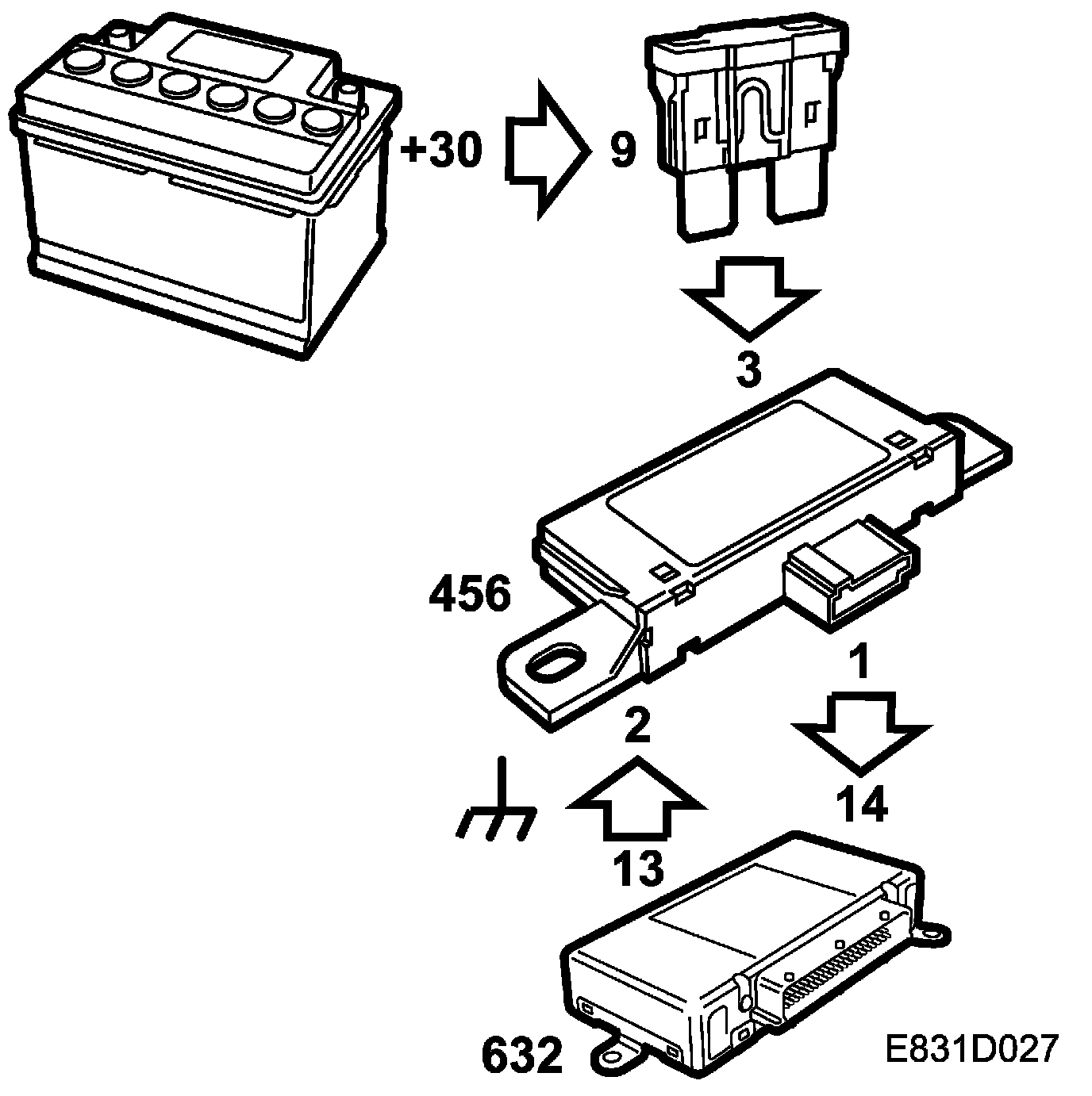 The receiver is supplied with power on pin 3 with +30 from fuse 9. It is also connected to the TWICE control module as follows: