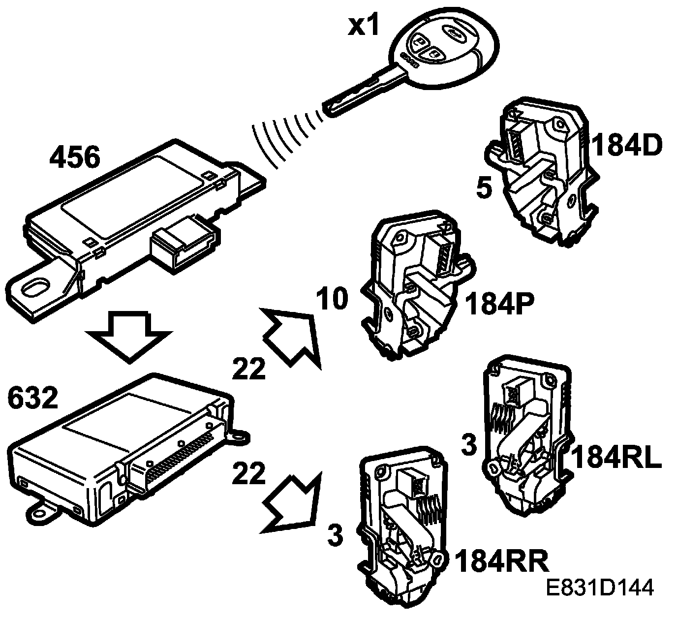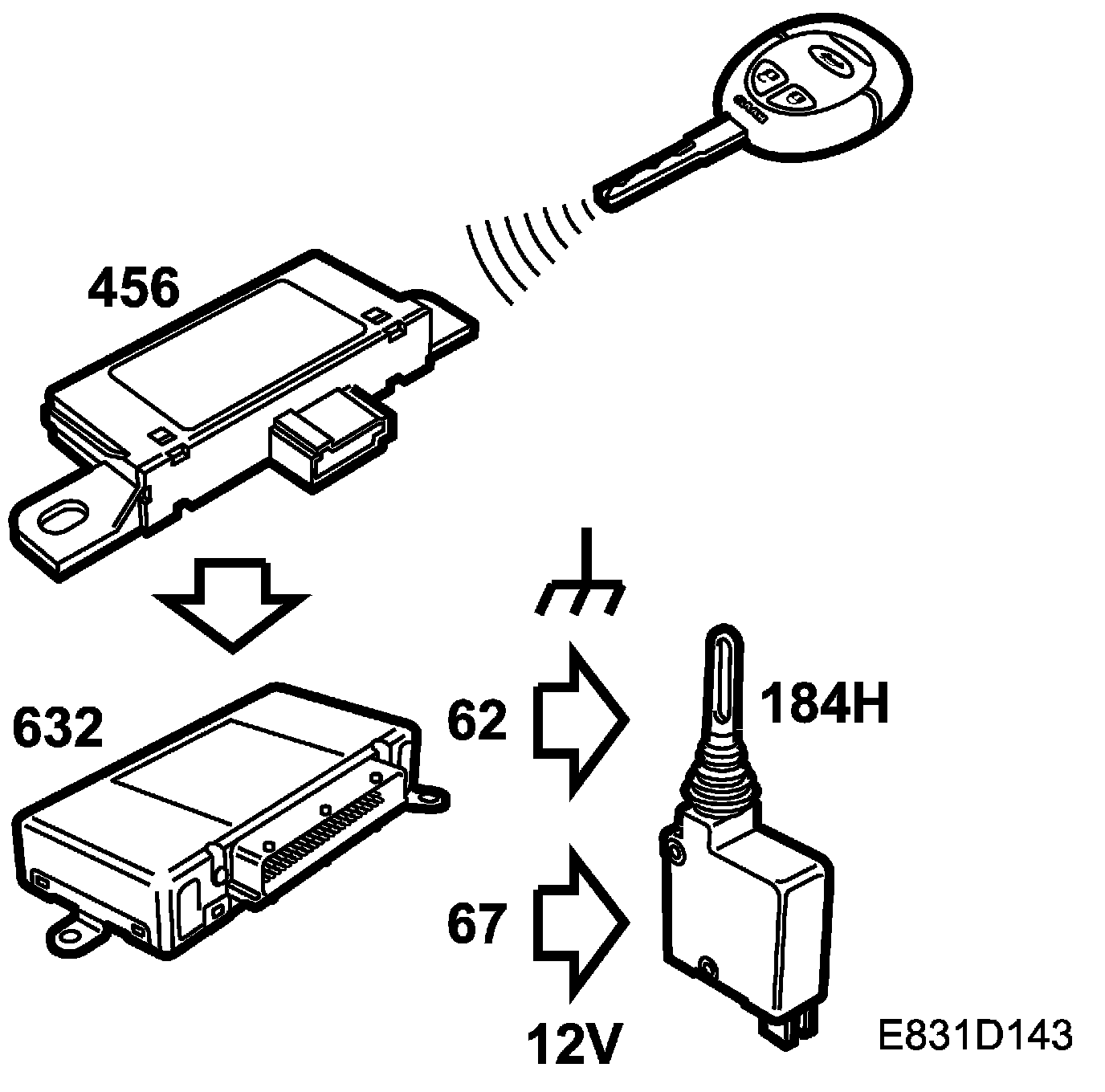 The signal from the remote control contains a unique identification code. It is a so called "rolling code" that changes each time a button is pressed. If the code is correct, the control module carries out the command. To lock the car, the remote control transmits codes continuously as long as the button is depressed. To unlock the car, the remote control transmits only one code when the button is pressed. This means that if the receiver does not register the code immediately, the unlock button must be pressed again.