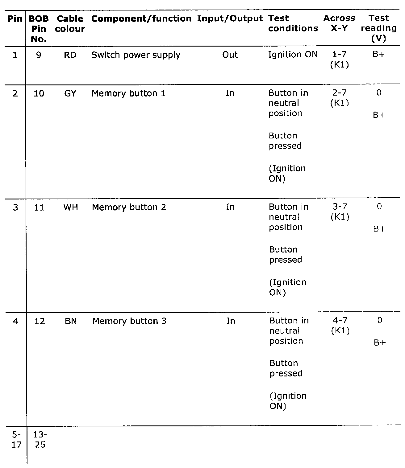 Pin Nos. 1 - 17: