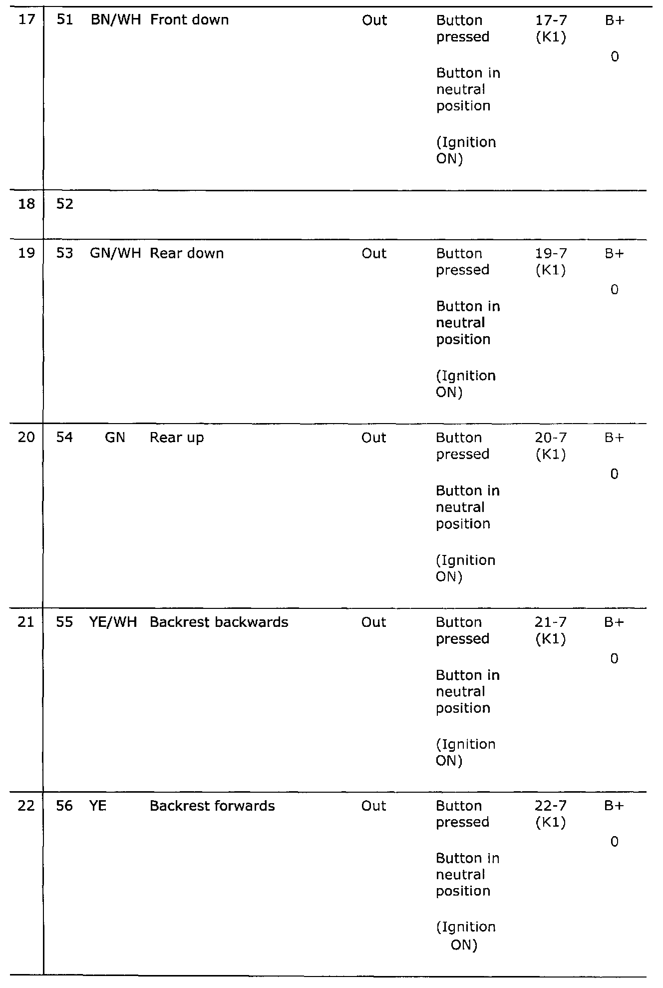 Pin Nos. 18 - 22: