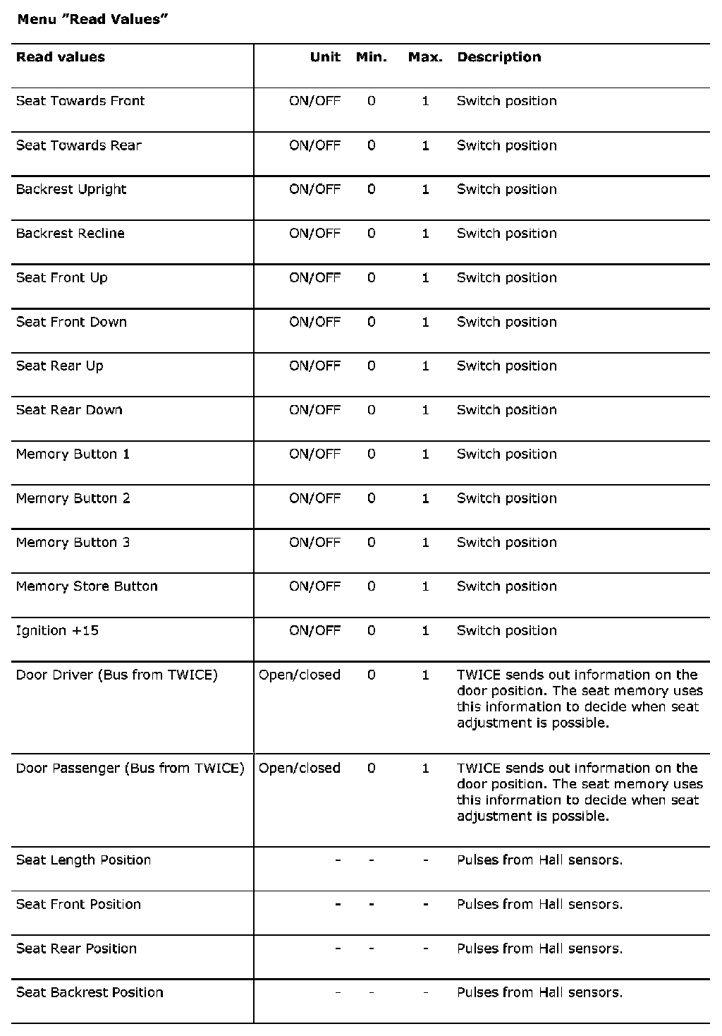 Menu "Read Values"