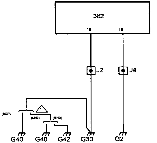 The pump motor is grounded through pin 16 to grounding points G30 and G40 (G42 RHD).