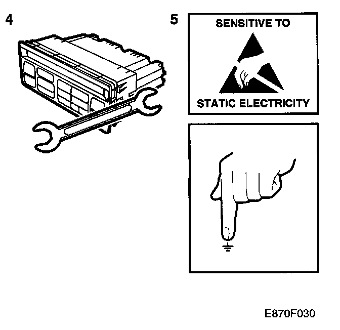 5 It is important to ground yourself, by touching the engine for example, before handling a control module. Never touch the control module pins.