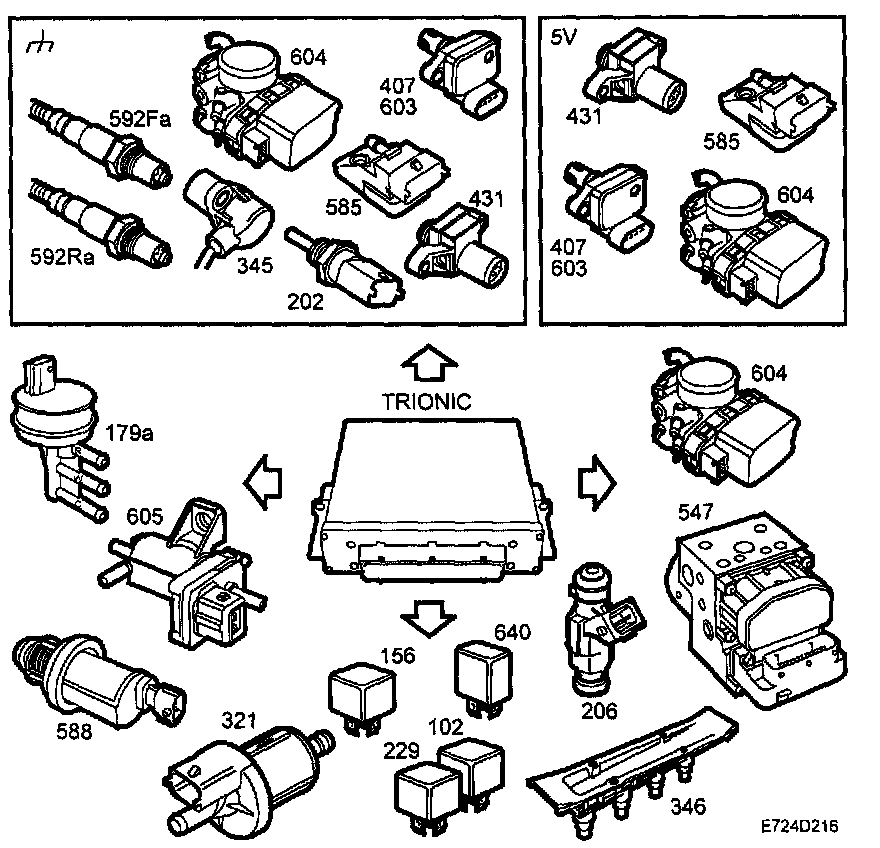 - Charge air control valve (179a), see Turbo control