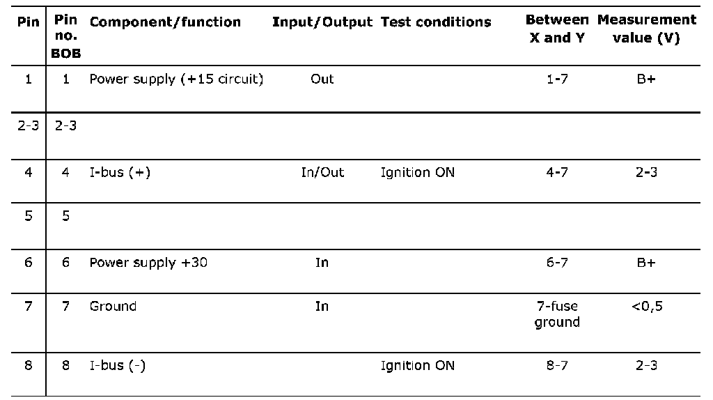 Connector 3 (K3), test readings