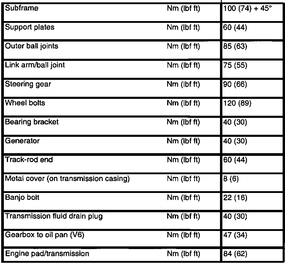 AF 30 4-spd A/T Torque Data: