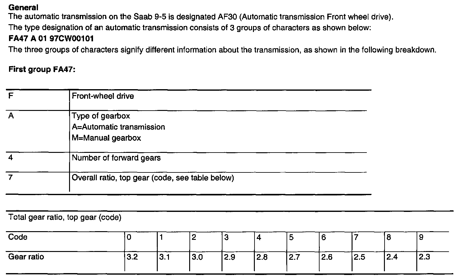 AF 30 4-spd A/T Technical Data: