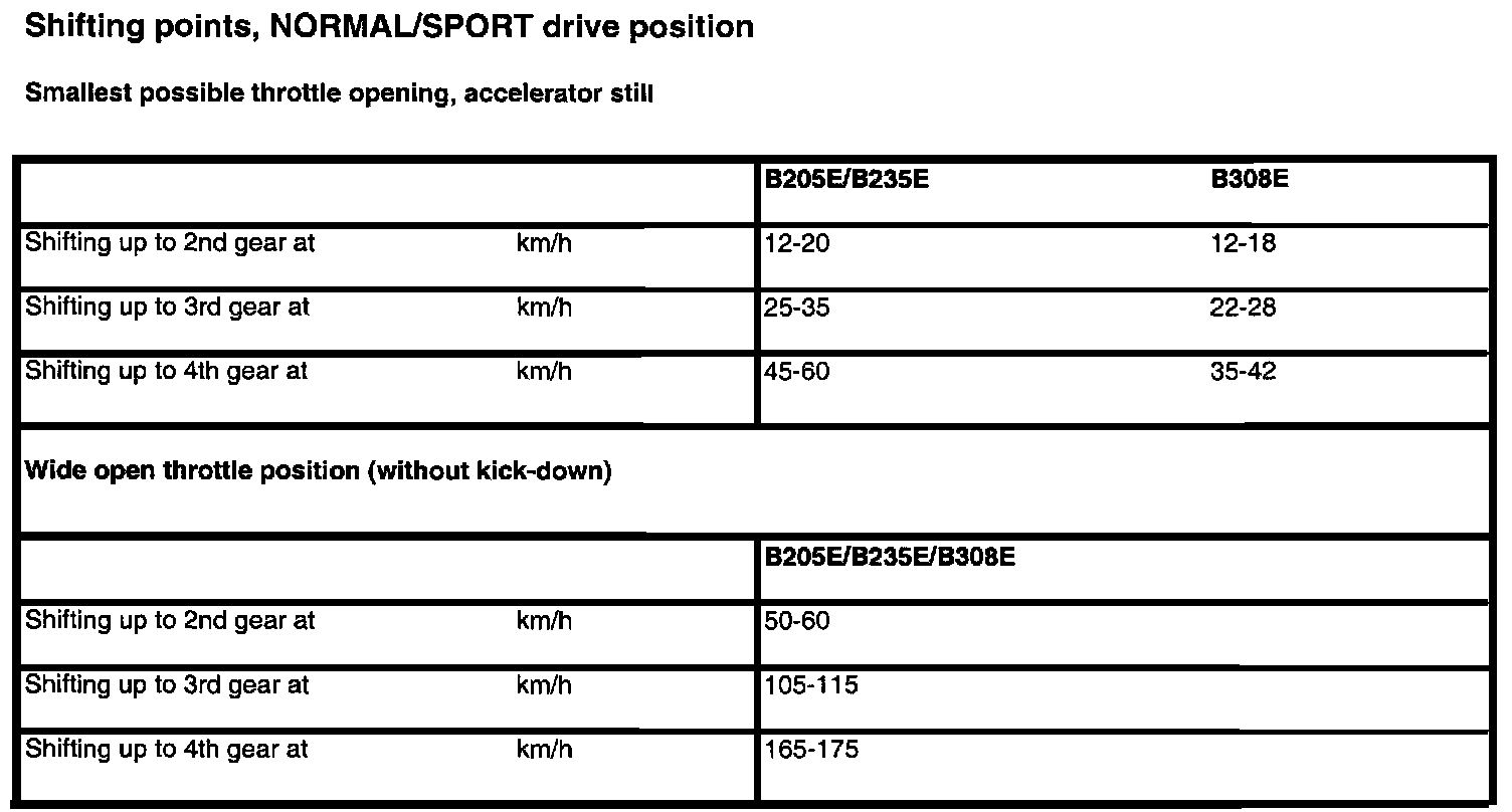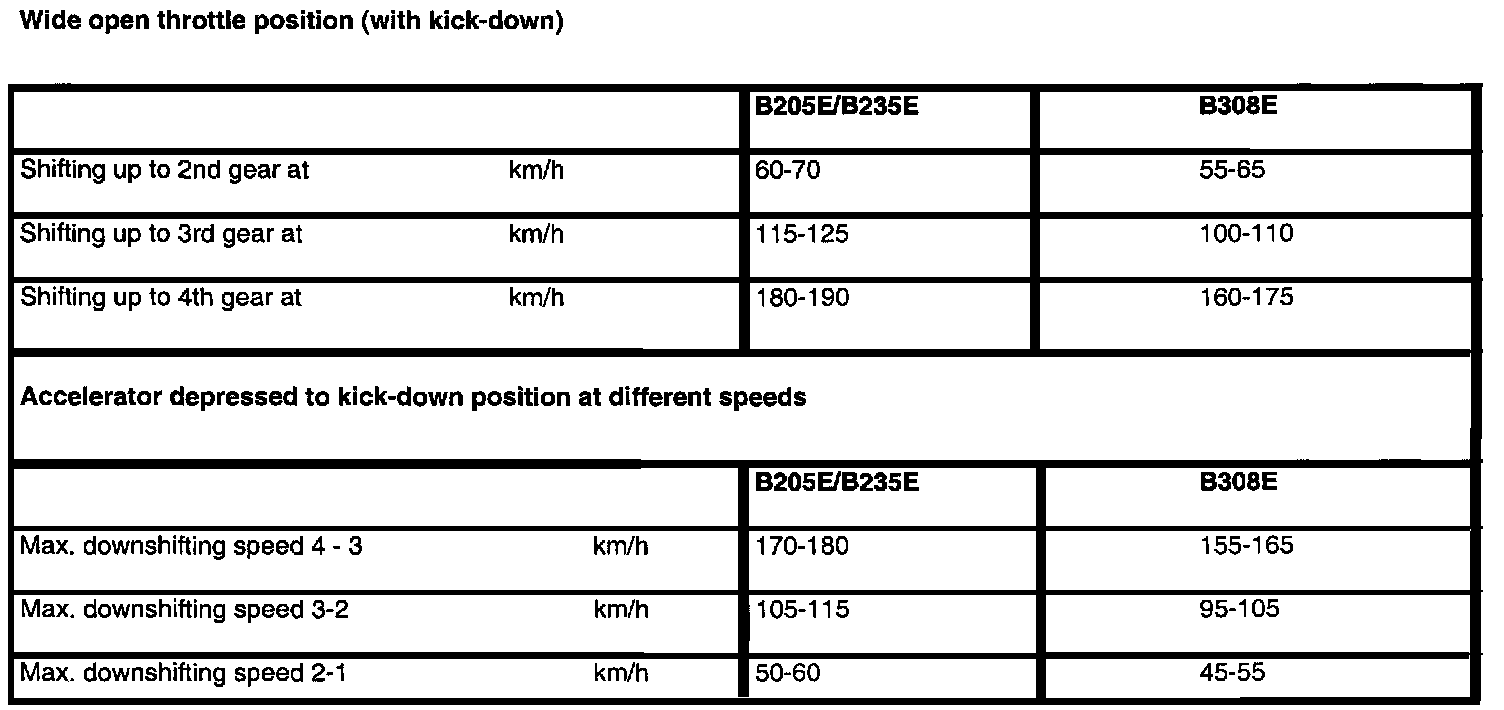AF 30 4-spd A/T Shifting Points: