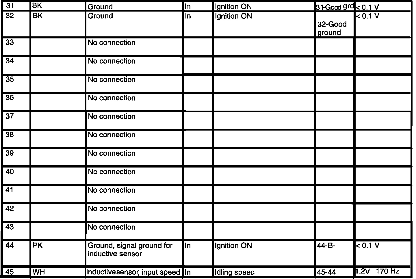 AF 30 4-spd A/T Control Module Pin Reading: