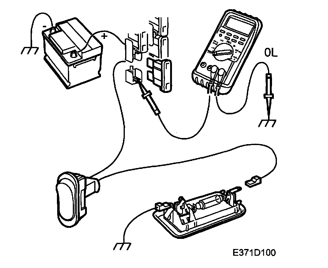 4. Carefully jiggle the wiring harness and check that the multimeter shows a constant infinite value (OL).