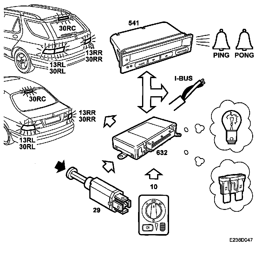 - Lamps, brake lights (30RL, 30RR, 30RC)