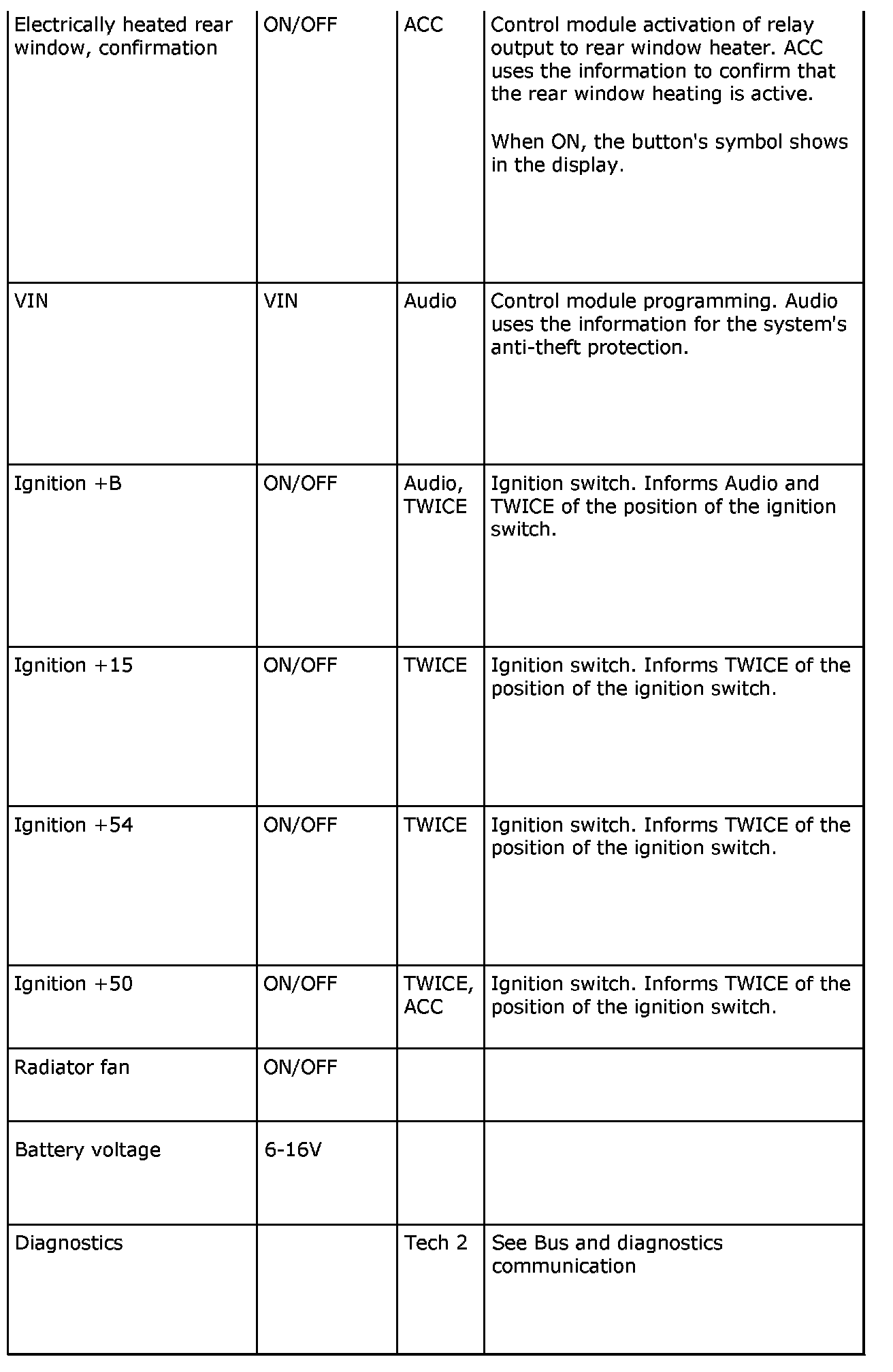 For a further description of the car's bus system, see System overview, bus and diagnostics communication, petrol.