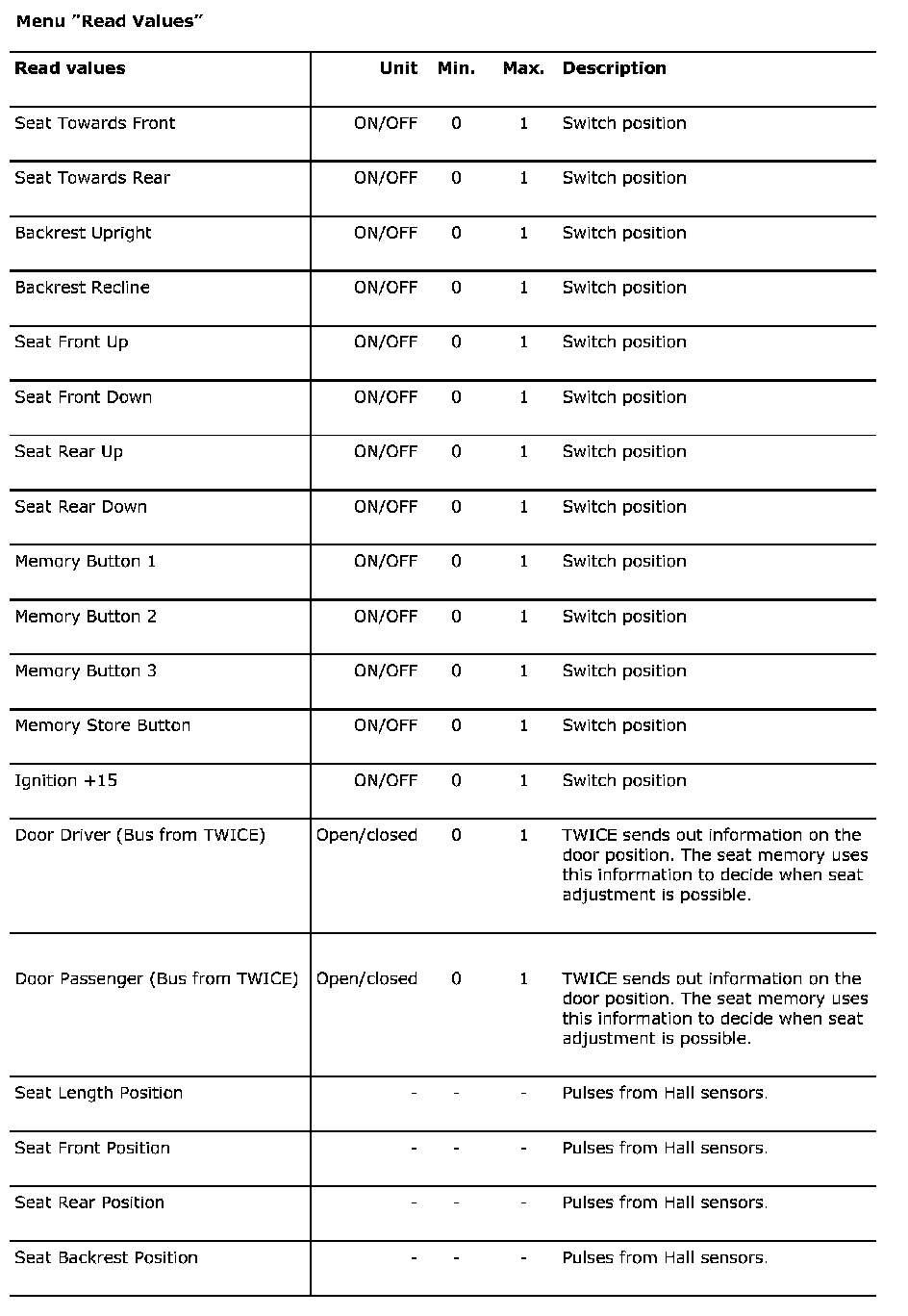 Menu "Read Values"