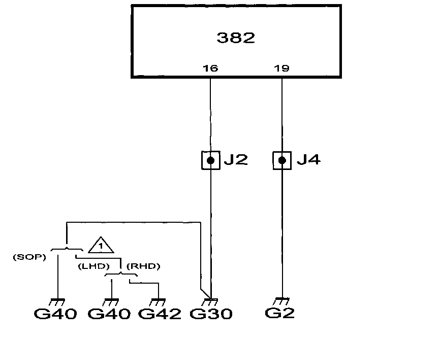 The pump motor is grounded through pin 16 to grounding points G30 and G40 (G42 RHD).