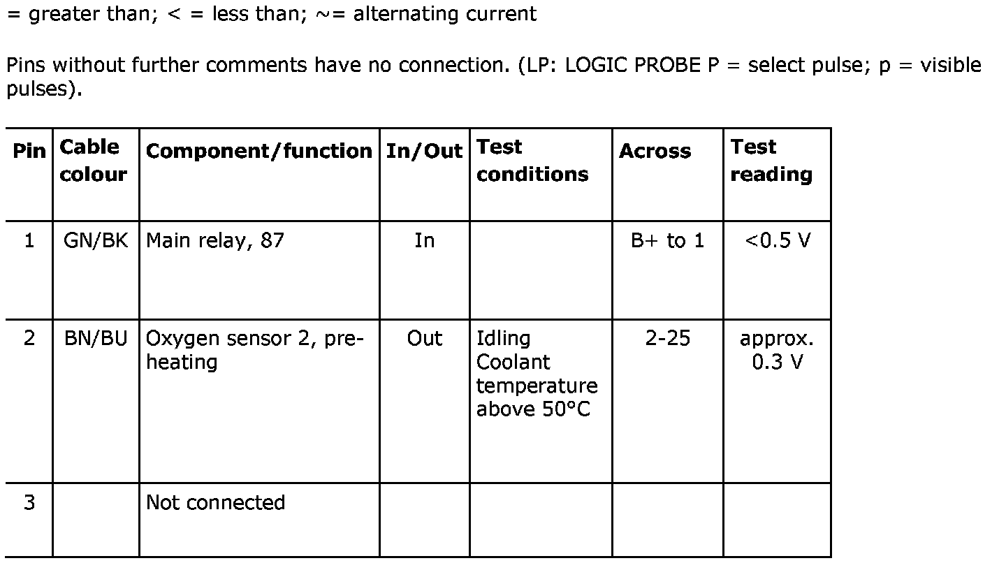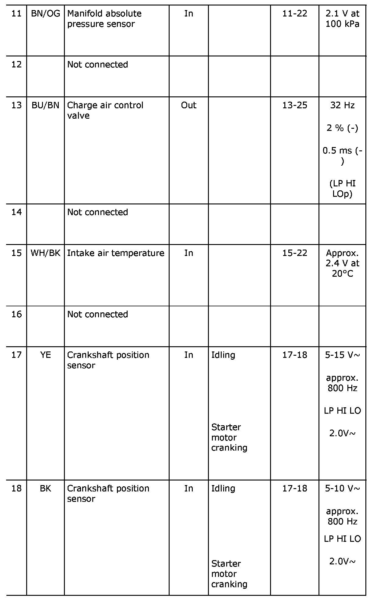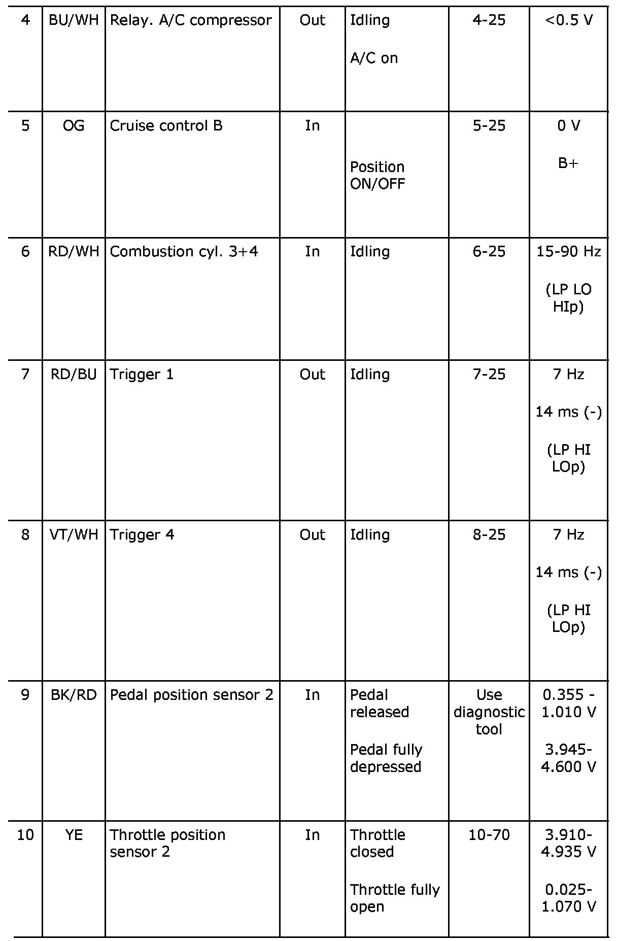Control Module Pinout Values
