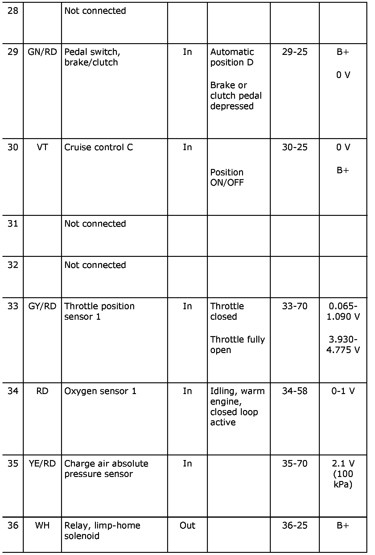 Pin No. 28-36: