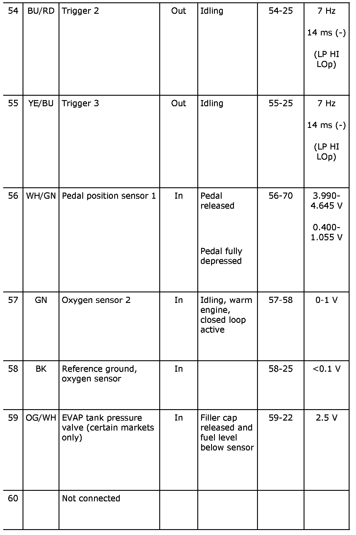 Pin No. 54-60: