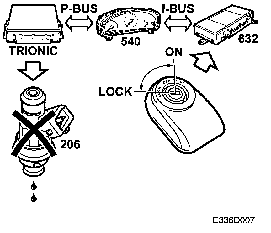 If the key and the MIU's ID number are OK, TWICE sends out the message "Immobilization OFF" on the bus. This information is used by Trionic which cancels fuel shut-off, which is always activated every time the ignition is switched on.