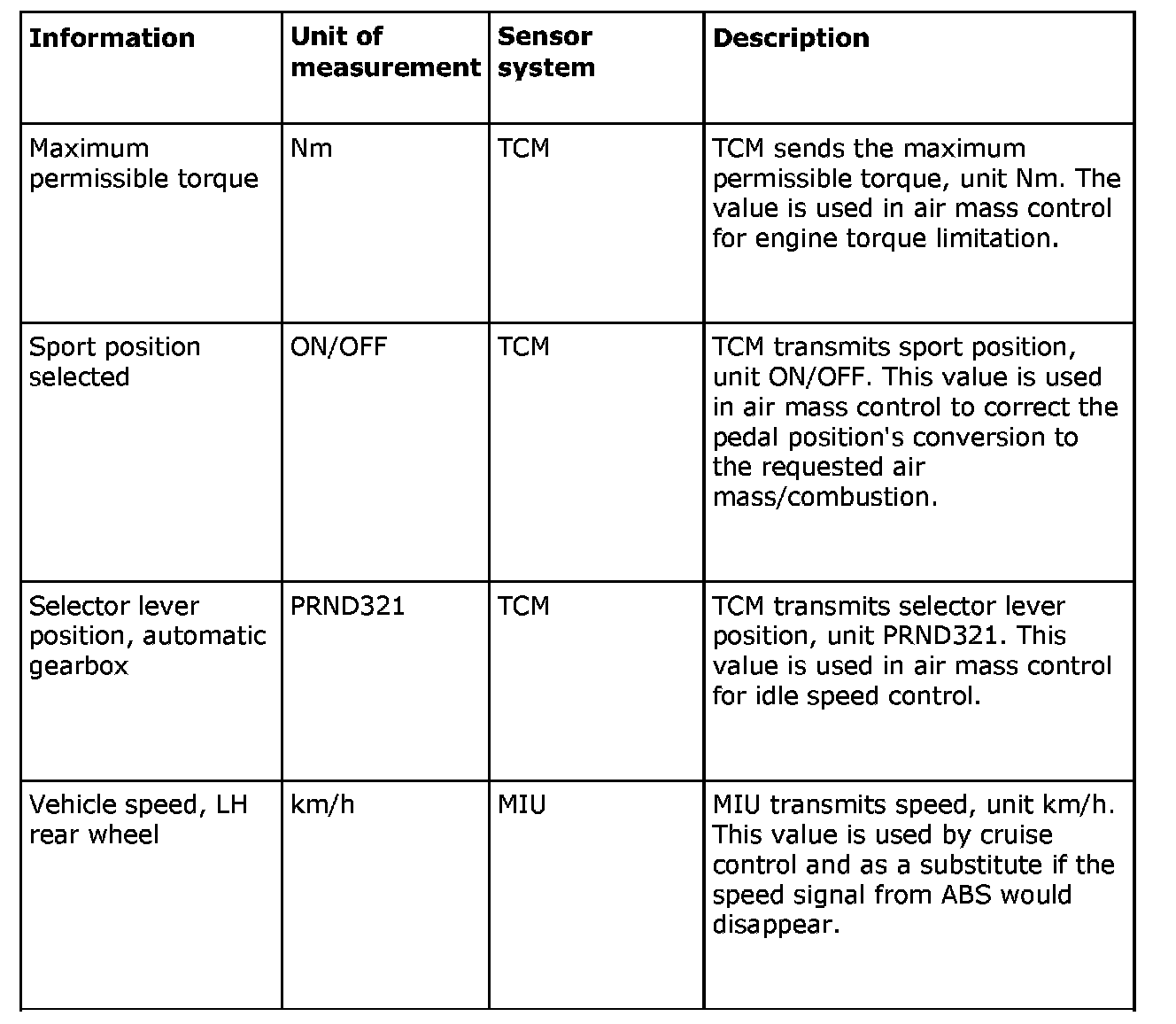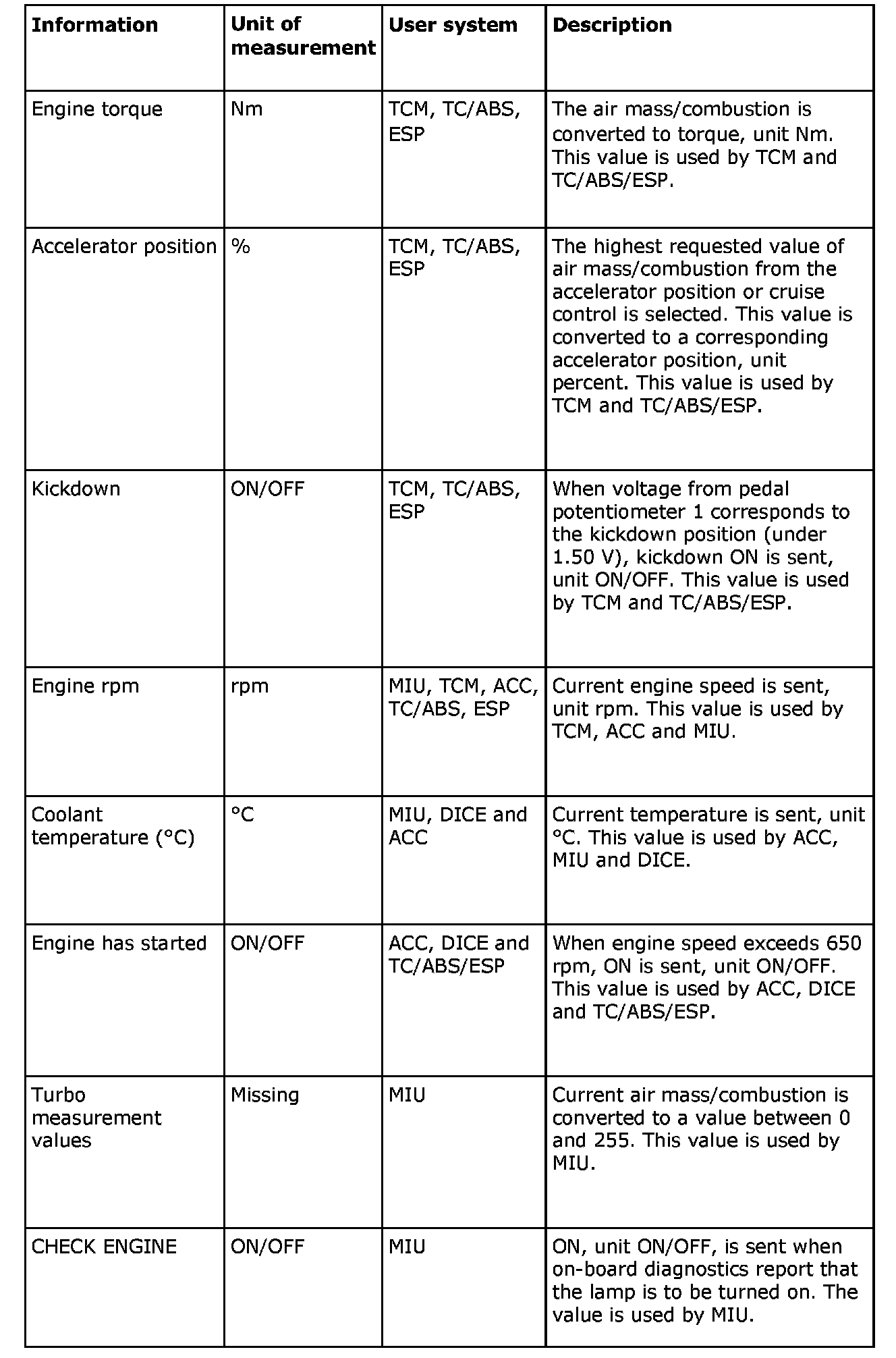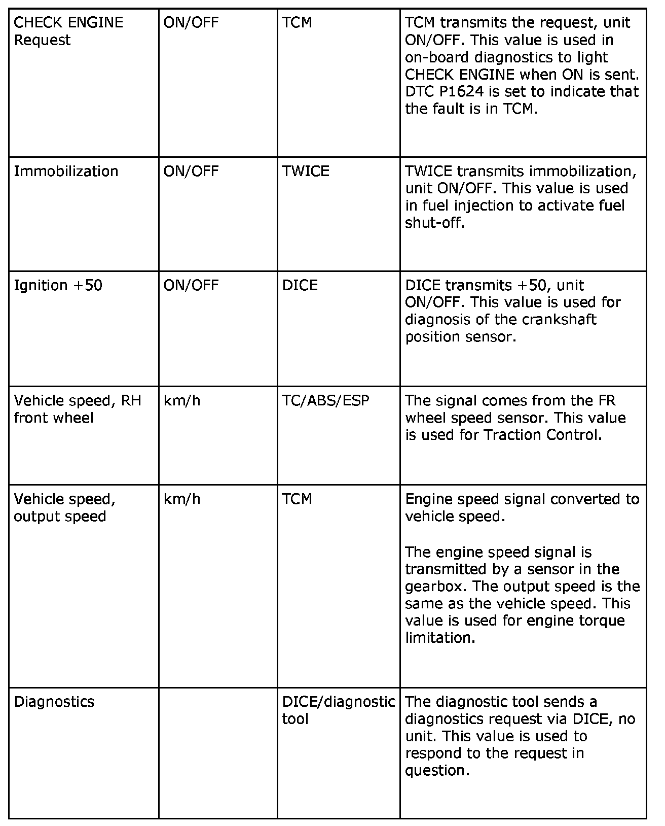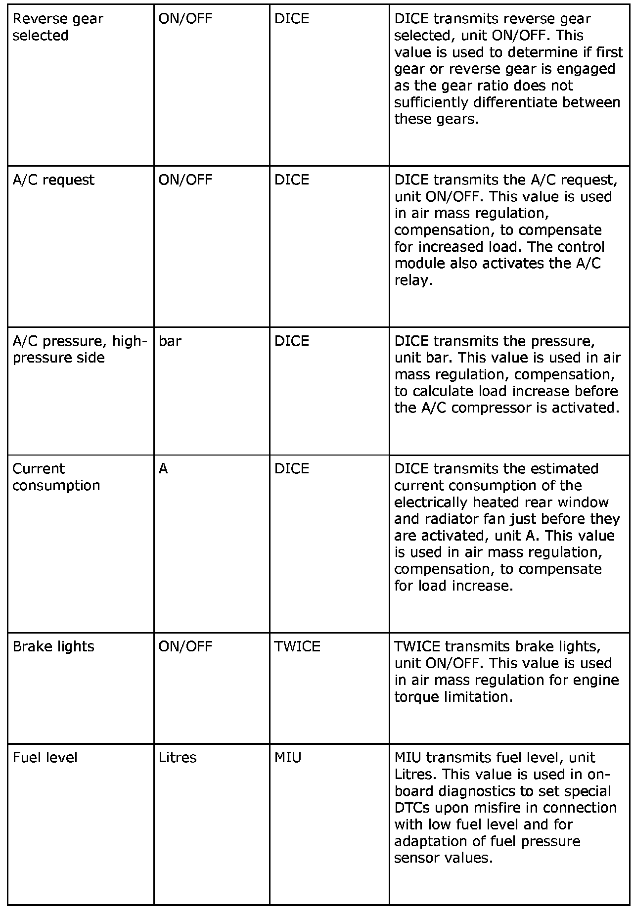 For further description of the car's bus system, see System overview, bus and diagnostics communication, petrol
