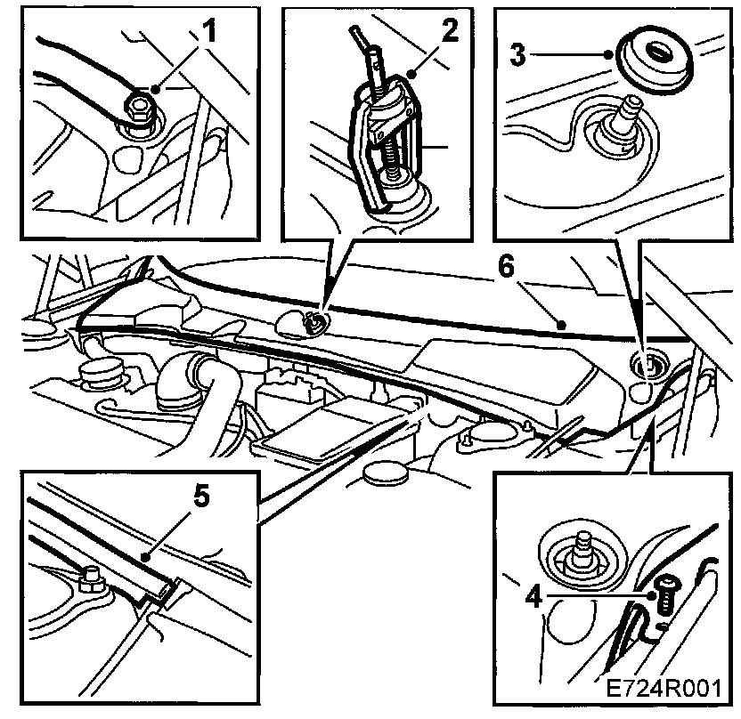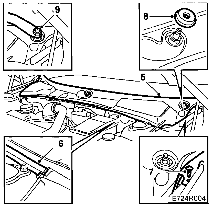 6. Remove the windscreen cover by grasping the front edge and lifting upward/forward. Be careful with the bonnet release wire on the left-hand side.