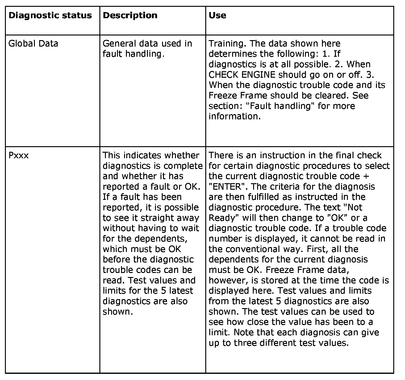 Diagnostic status
