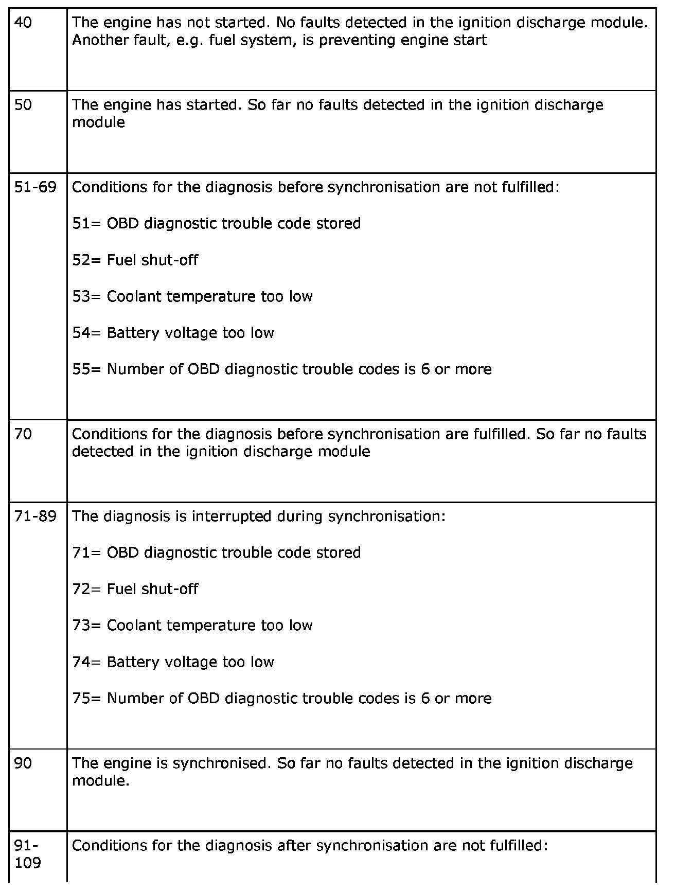 If "Current Status" indicates a value of 131 or greater (fault indication) during driving then the value will be stored as "Failure Status" during 40 heating cycles. "Failure Status" can be seen as a freezing of a fault detected during earlier driving. The function can be compared to fault handling for the normal OBD diagnostic trouble codes.