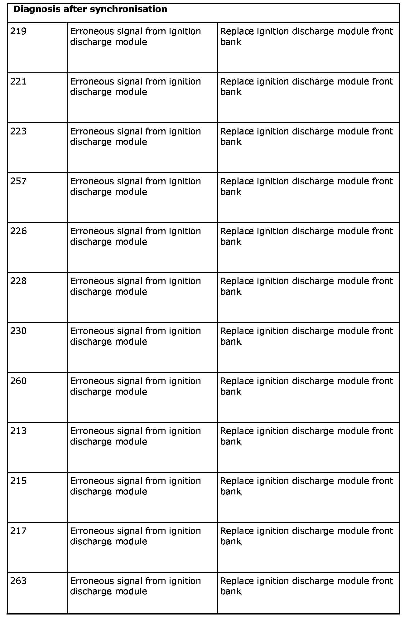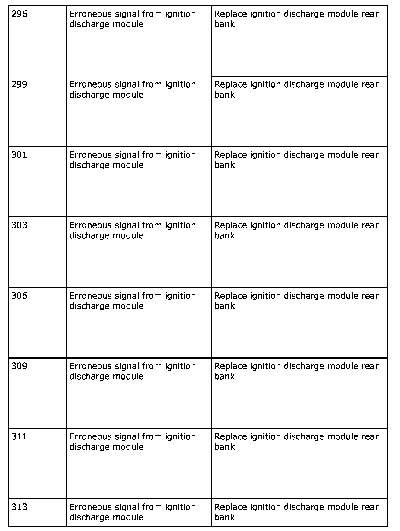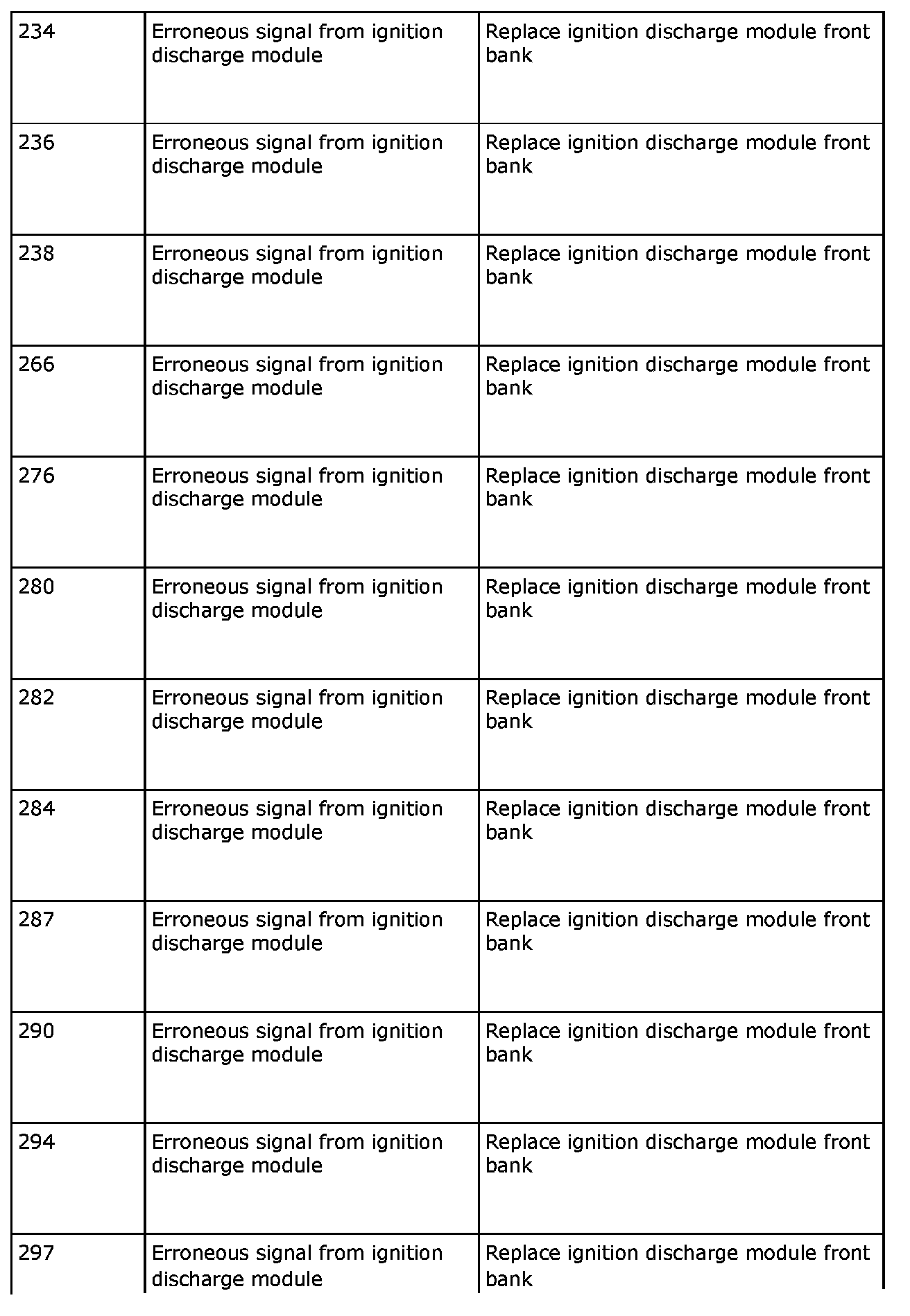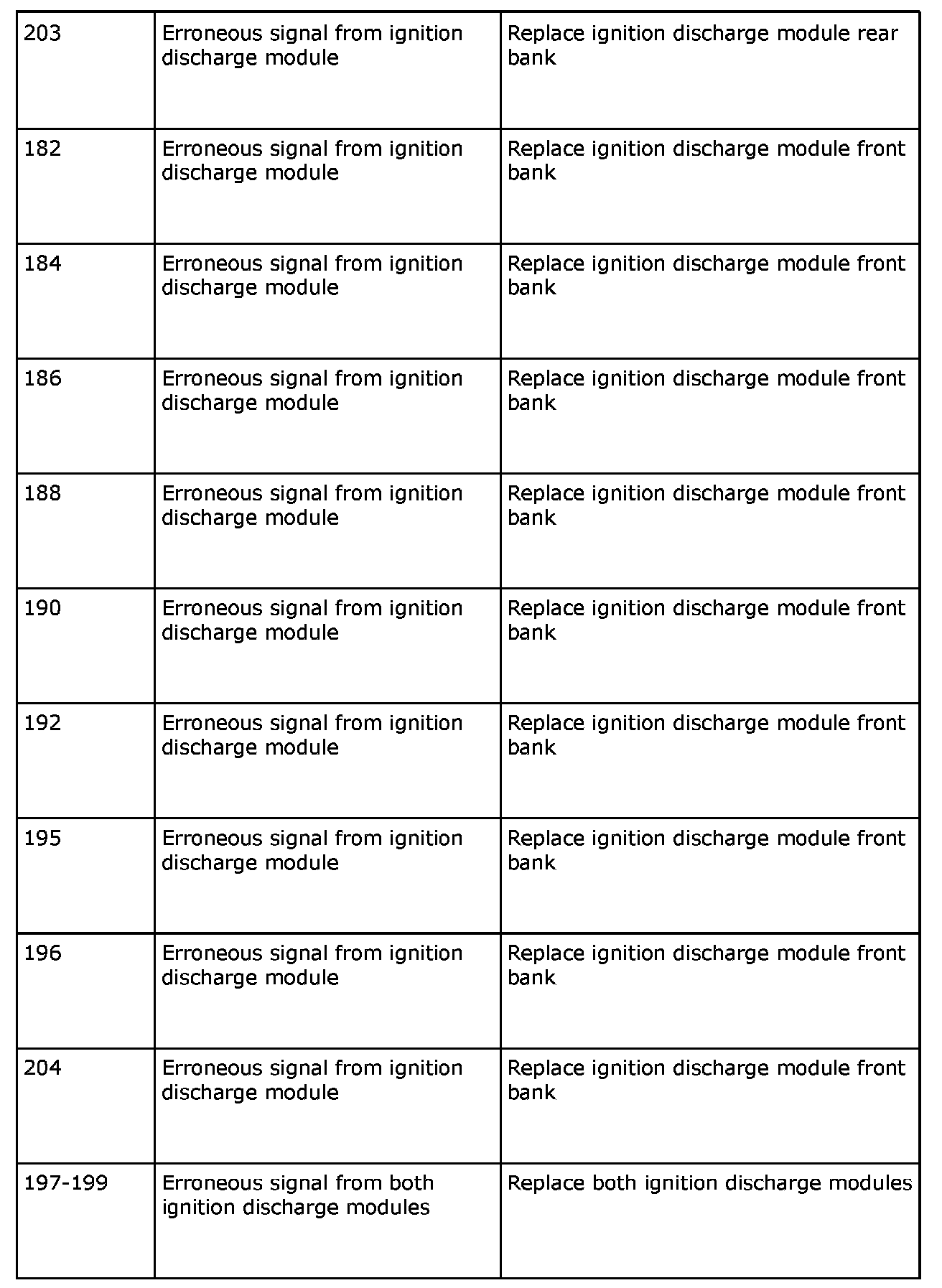 Remedy in accordance with the table above. If the car is under warranty, state "IDM Check Code" on the warranty report.