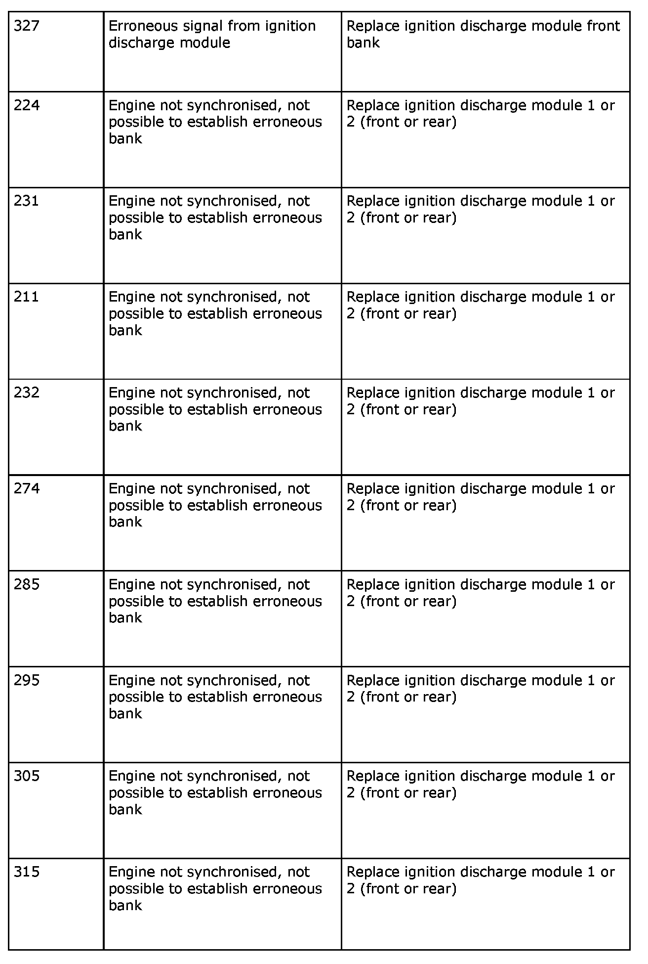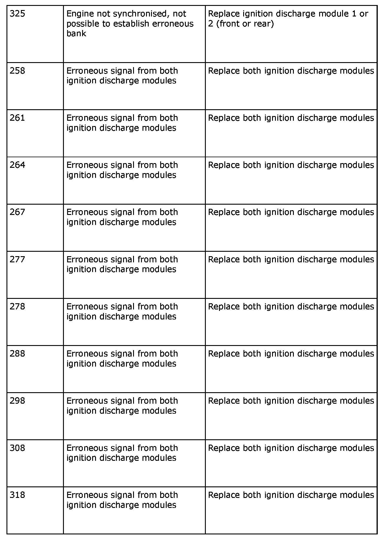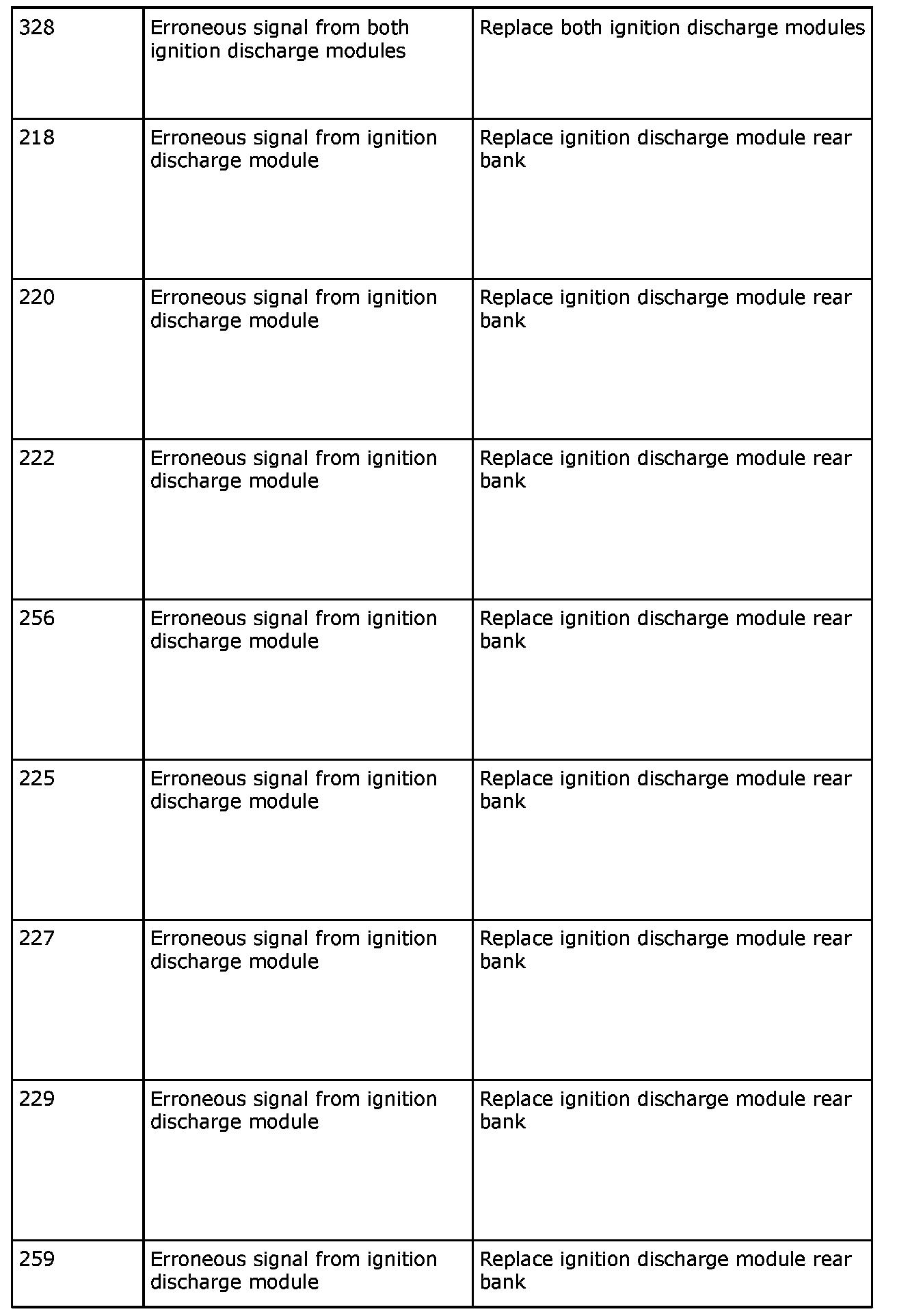 Remedy in accordance with the table above. If the car is under warranty, state "IDM Check Code" on the warranty report.