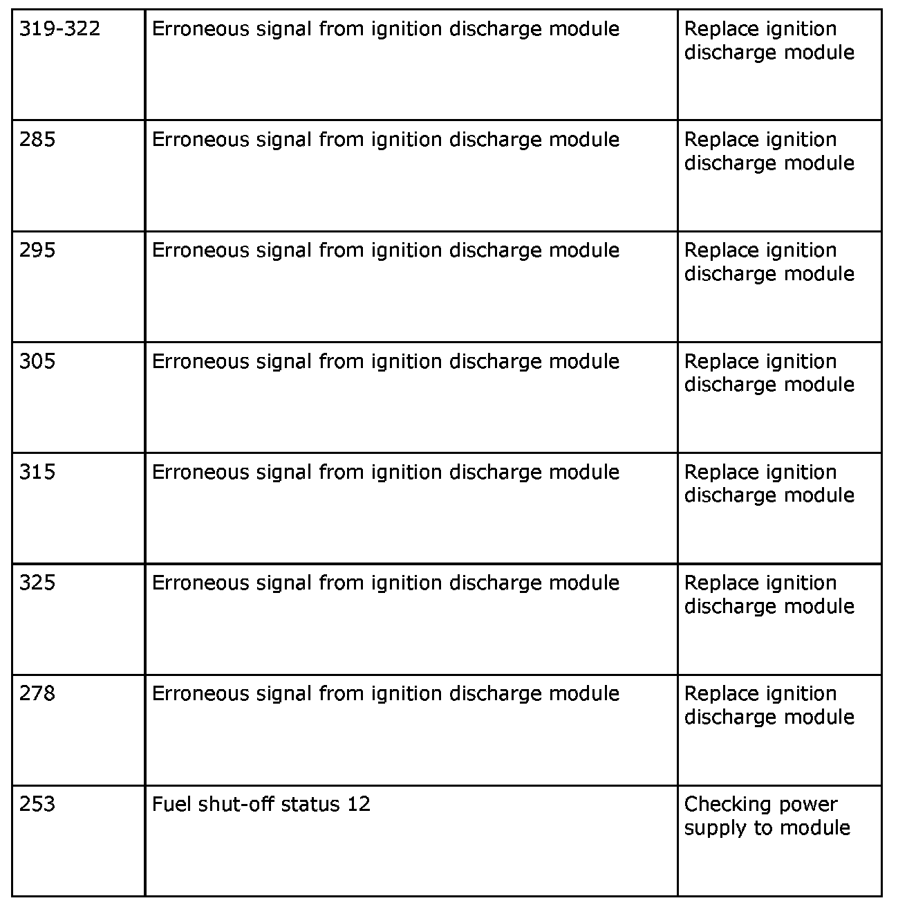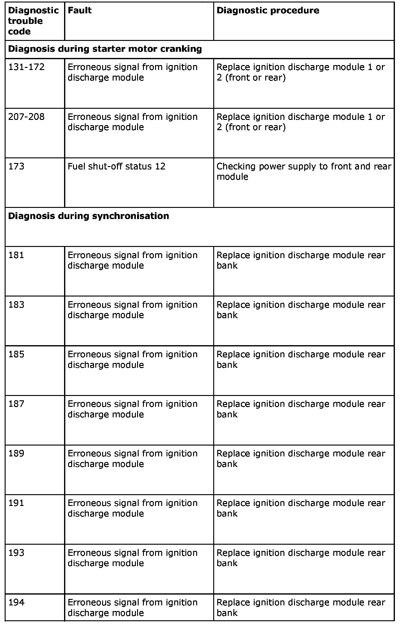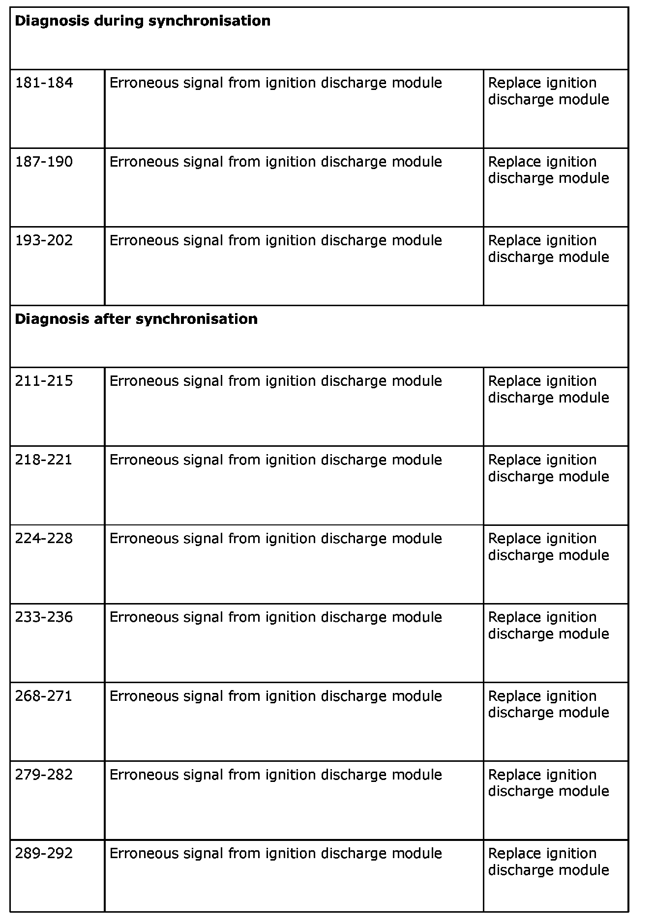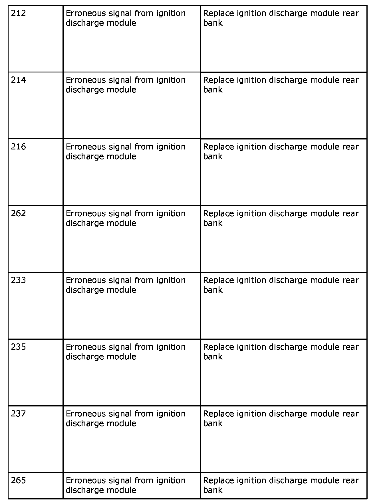 Remedy in accordance with the table above. If the car is under warranty, state "IDM Check Code" on the warranty report.
